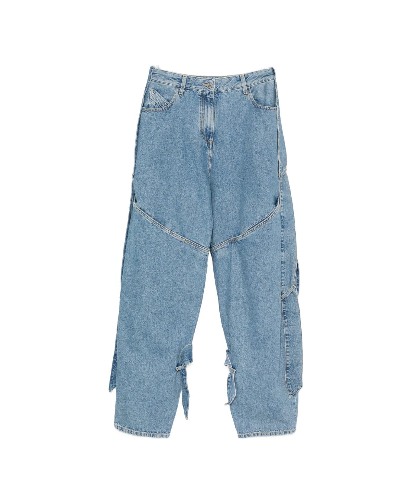 blue tie detail panelled design seam detail five pockets belt loops Composition: Cotton, 100%
