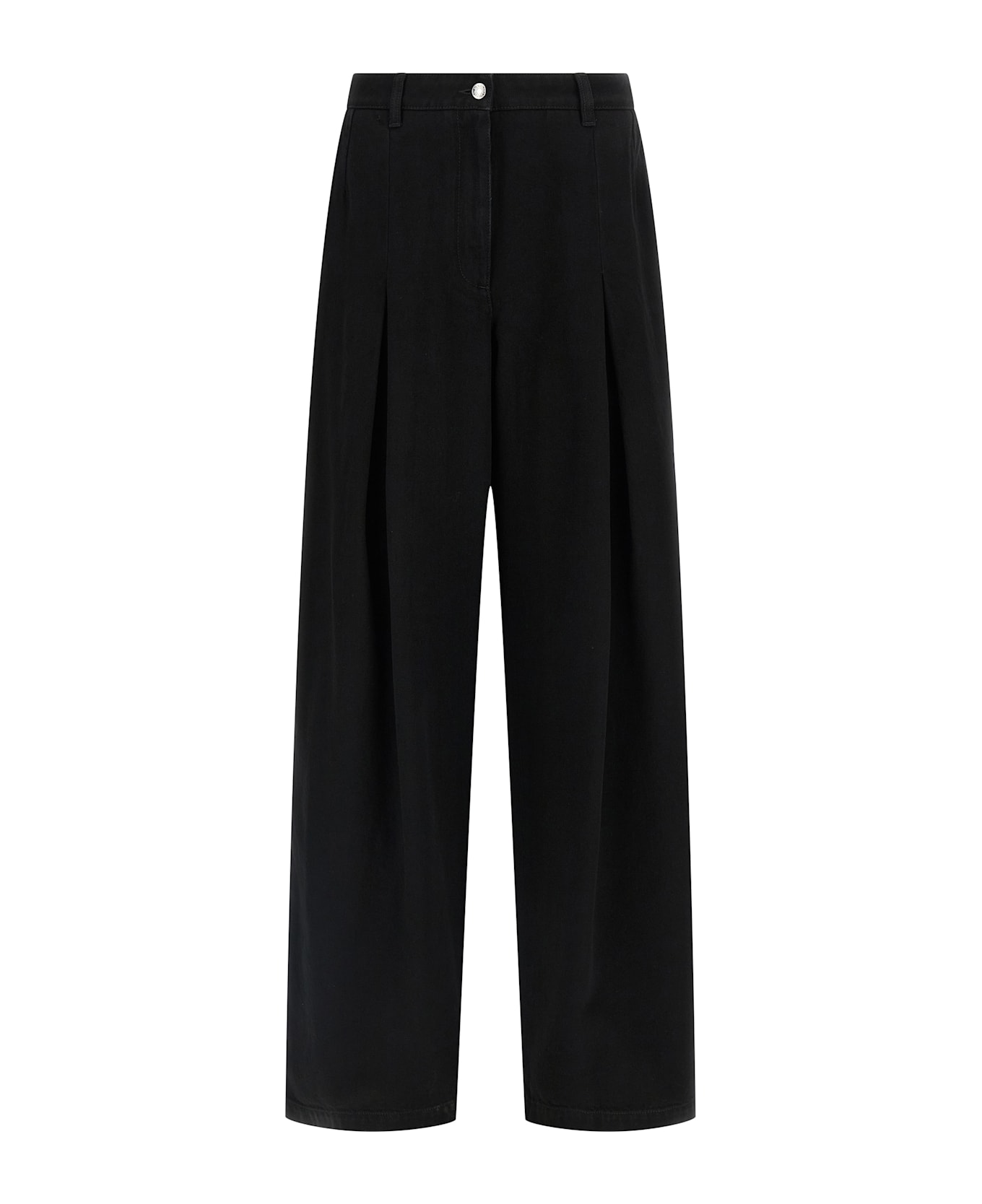 'Shara' jeans in garment-dyed cotton denim with front gussets, extra wide and straight leg, zip and button closure, pockets, monogalvanic plate with engraved logo on the back. Composition: 100% cotton