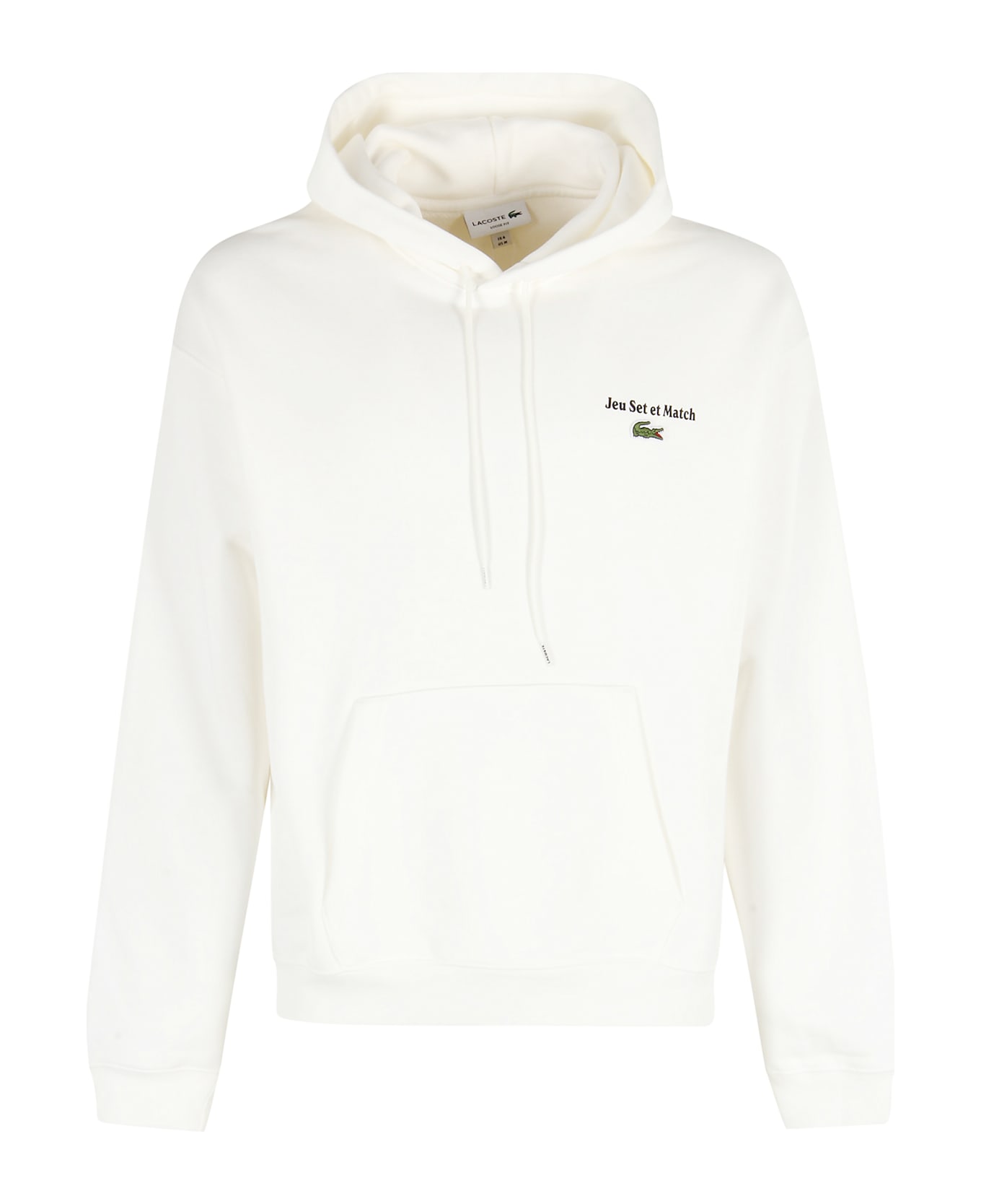 Sweatshirt - Lacoste - White color - Adjustable hood with drawstring - Applied upper logo - Slogan print " jeu set match" upper - Long sleeves - Front pocket