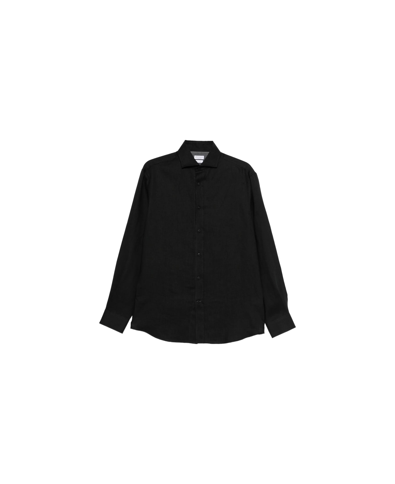 black button closure long sleeves buttoned cuffs classic collar tonal stitching