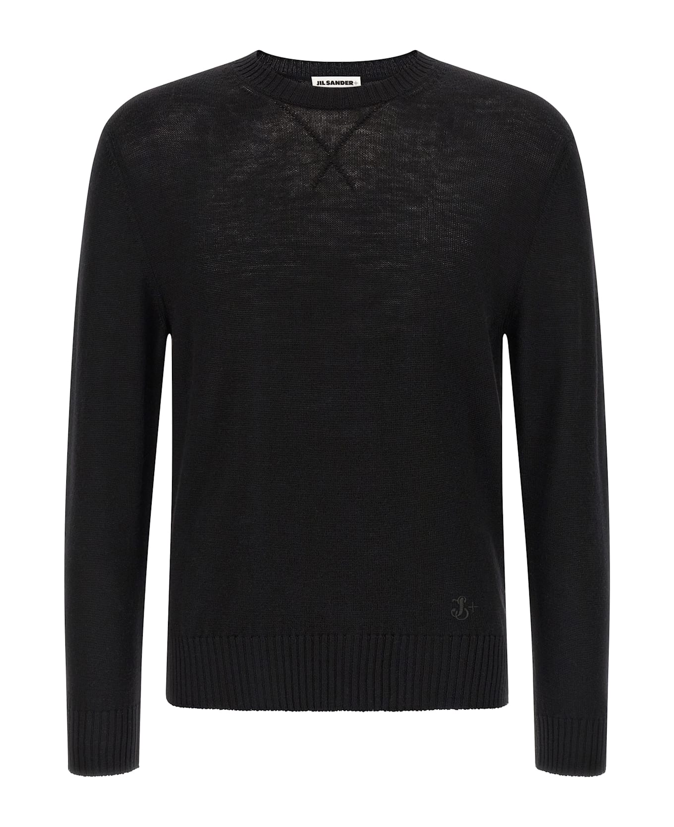 Knitted virgin wool sweater with tone-on-tone logo embroidery on the front, crew neck, long sleeves with cuffs and dropped shoulder. Composition: 100% virgin wool