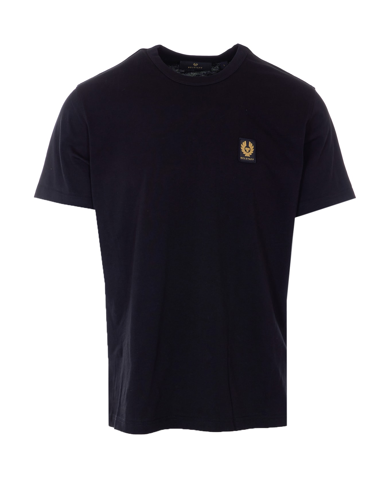 Belstaff black t-shirt, crewneck, patch logo on the front