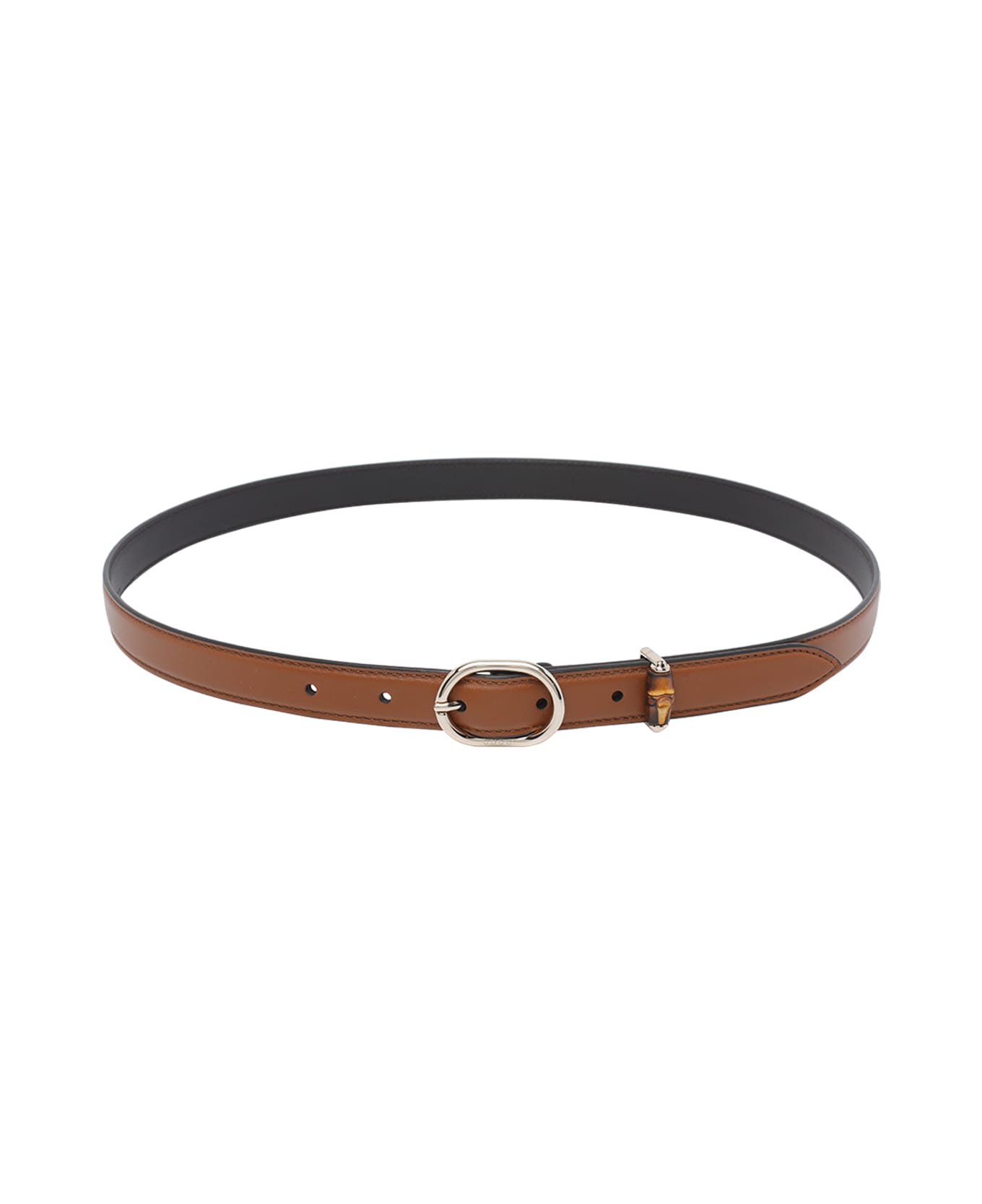 Gucci brown Oval Buckle thin belt, frontal buckle closure, leather model Composition: 100% Calf Leather