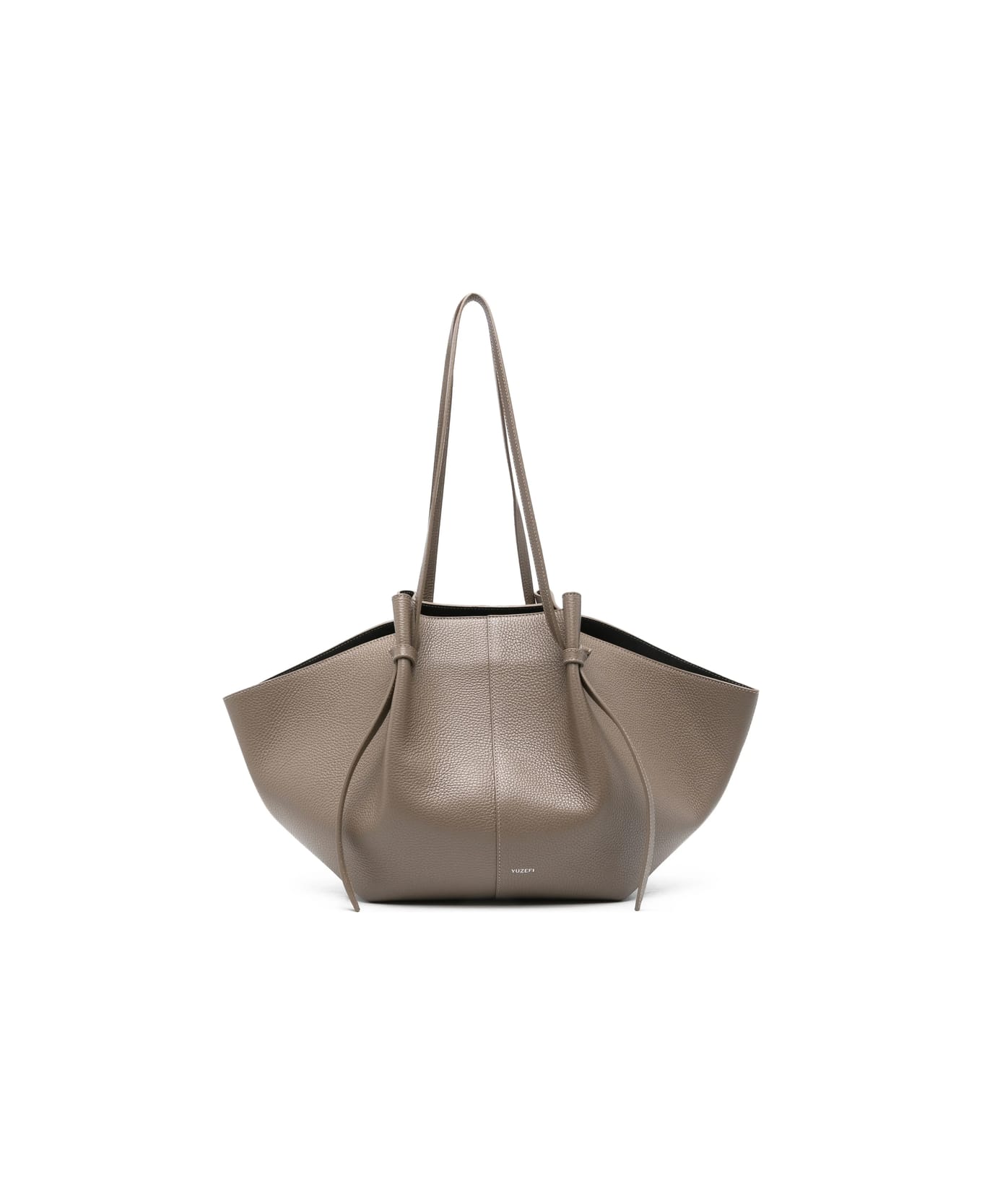 taupe brown calf leather knotted straps open top top handles