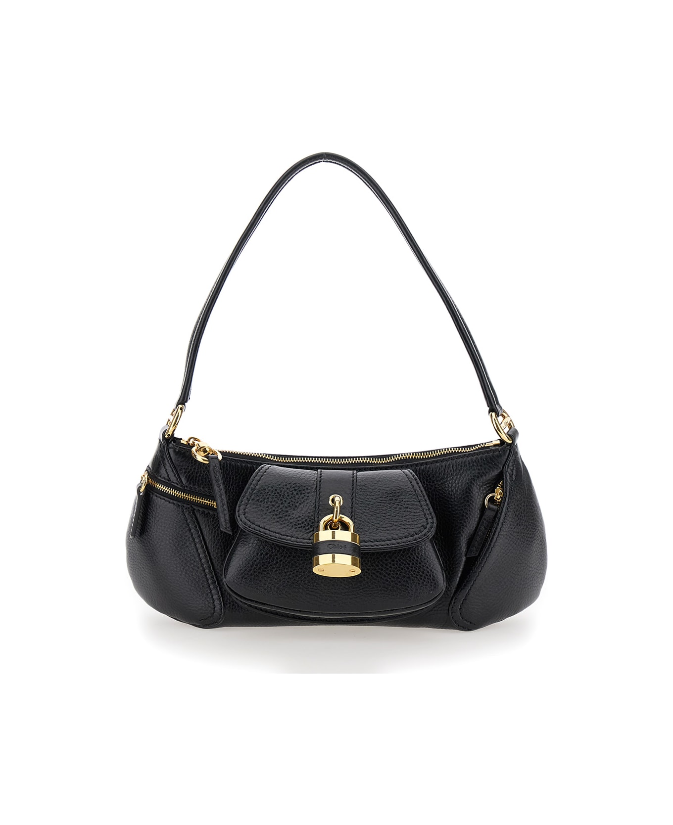 Black Shoulder Bag With Padlock In Hammered Leather Woman
