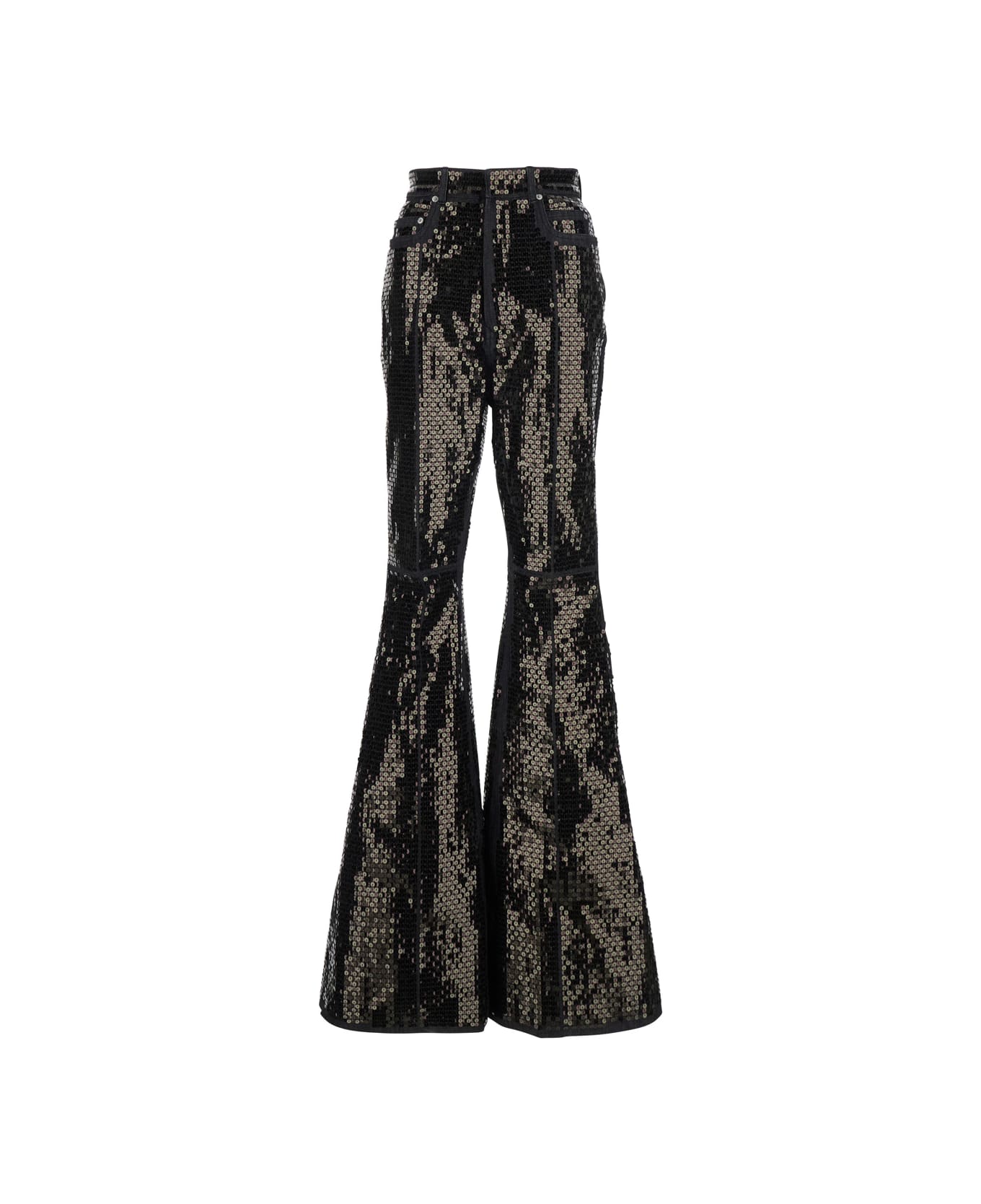 Jeans Black High waist Belt loops Front button and zip closure Wide leg Flare design Straight hem Five-pocket design All-over sequins Denim Relaxed fit