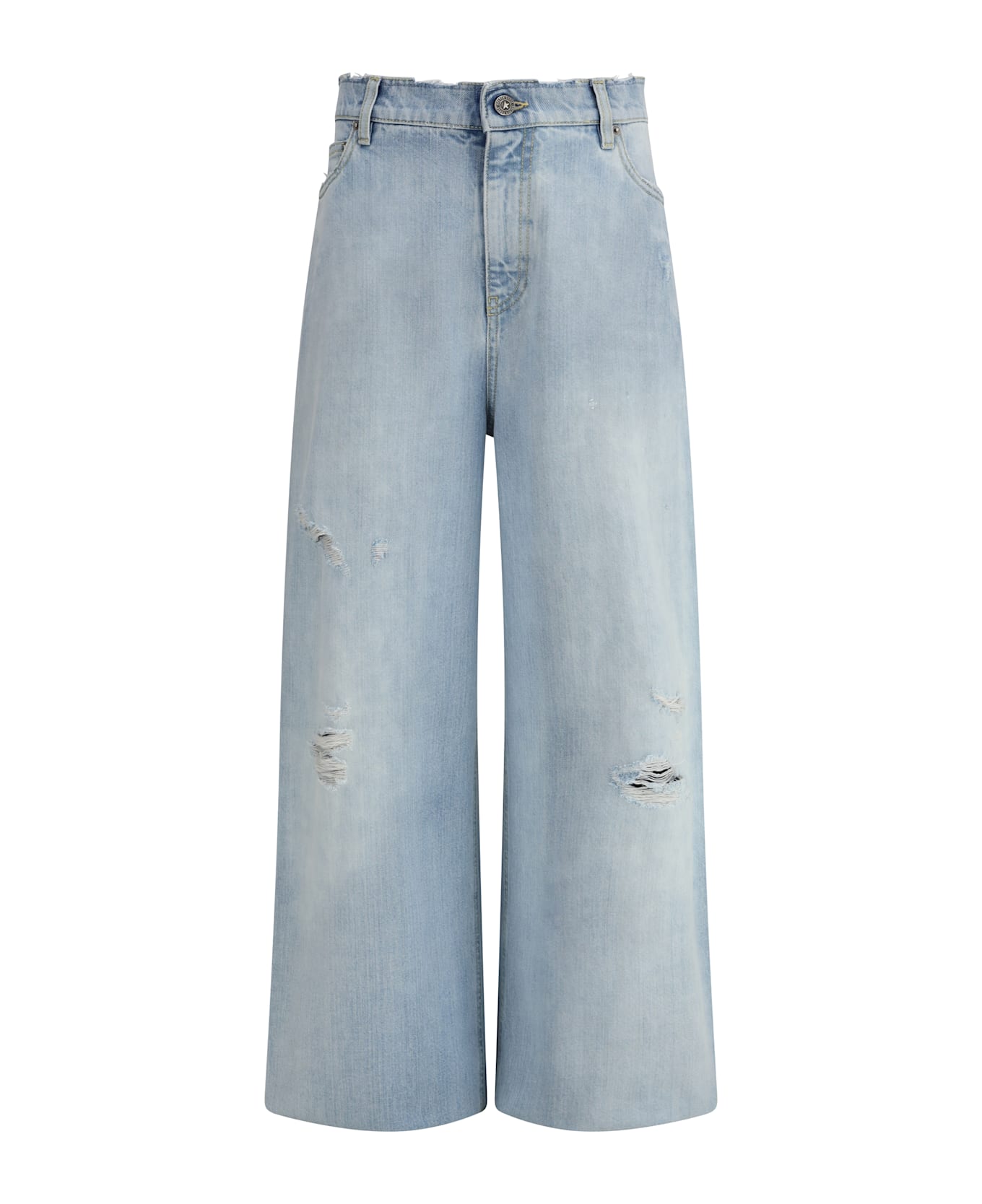 Golden goose's melody boyfriend jeans express a casual, lived-in aesthetic typical of the brand. made in a low-waisted style with five pockets and belt loops on the waistband, they stand out for their frayed hem and worn effect, which give the garment an authentic and casual character.