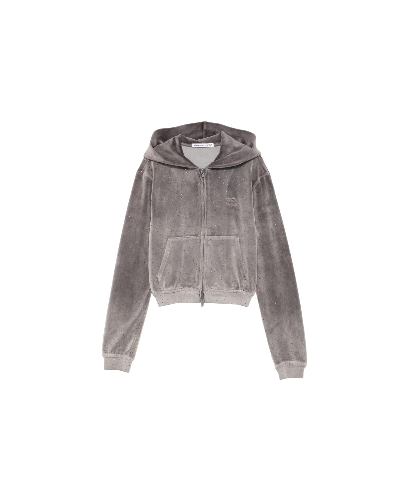 grey embellished front zip fastening hood front pouch pocket ribbed hem