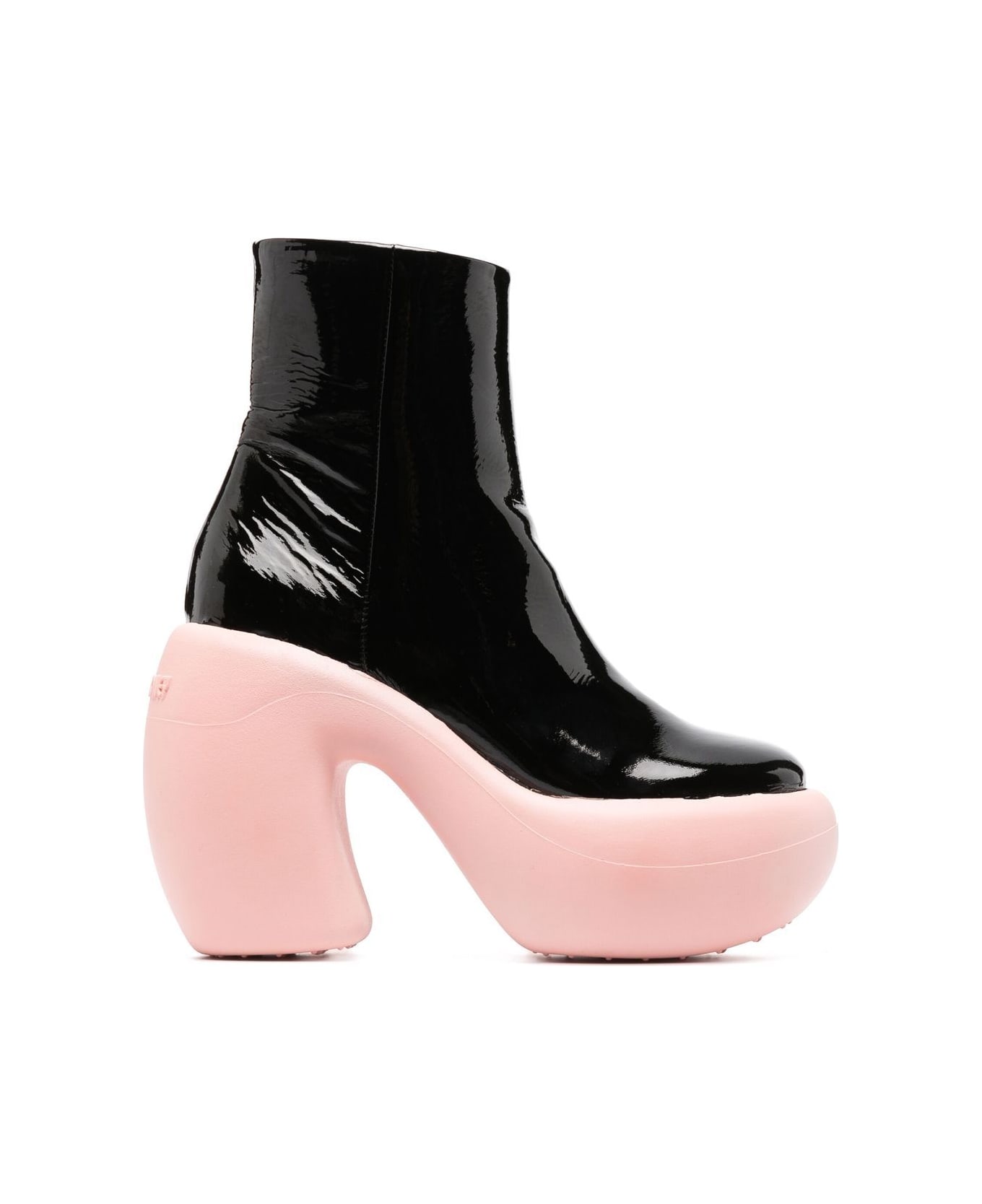 Honey Bubble 120mm heeled boots from Haus of Honey featuring black, light pink, calf leather, patent finish, embossed logo to the rear, round toe, side zip fastening, branded insole, platform sole and high block heel.