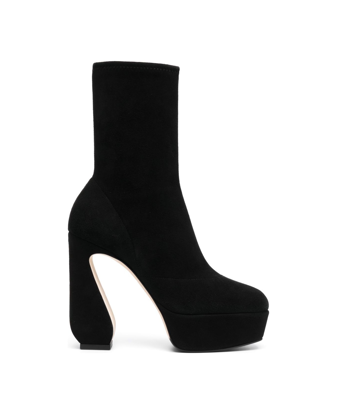 sculpted-heel platform ankle boots from Si Rossi featuring black, calf leather, silver-tone hardware, branded insole, square toe, side zip fastening, high sculpted heel, platform sole and ankle-length.