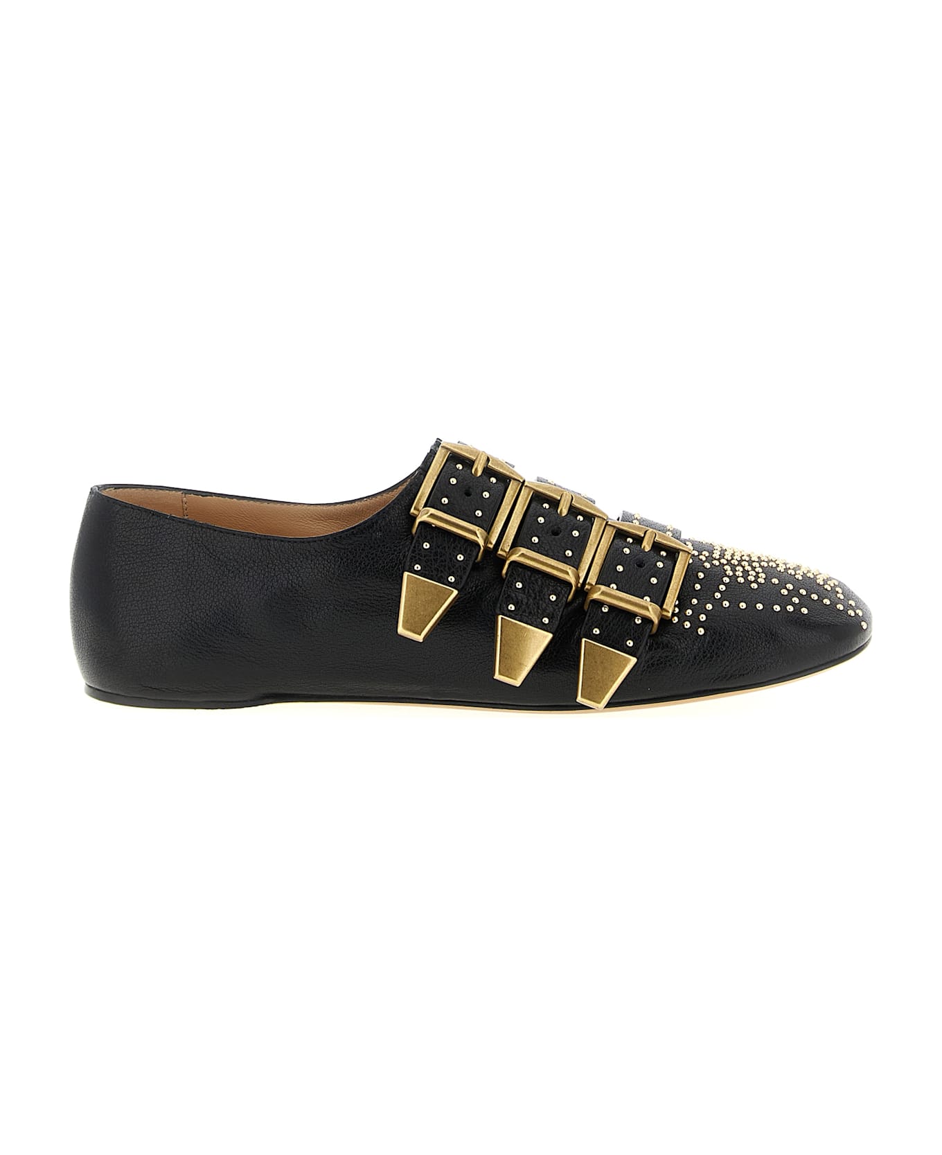 'Susanna' ballet flats in garnet buffalo leather with studs and metal 'Gold' buckles, rounded toe, leather sole. Composition: 100% lamb leather (Ovis aries)