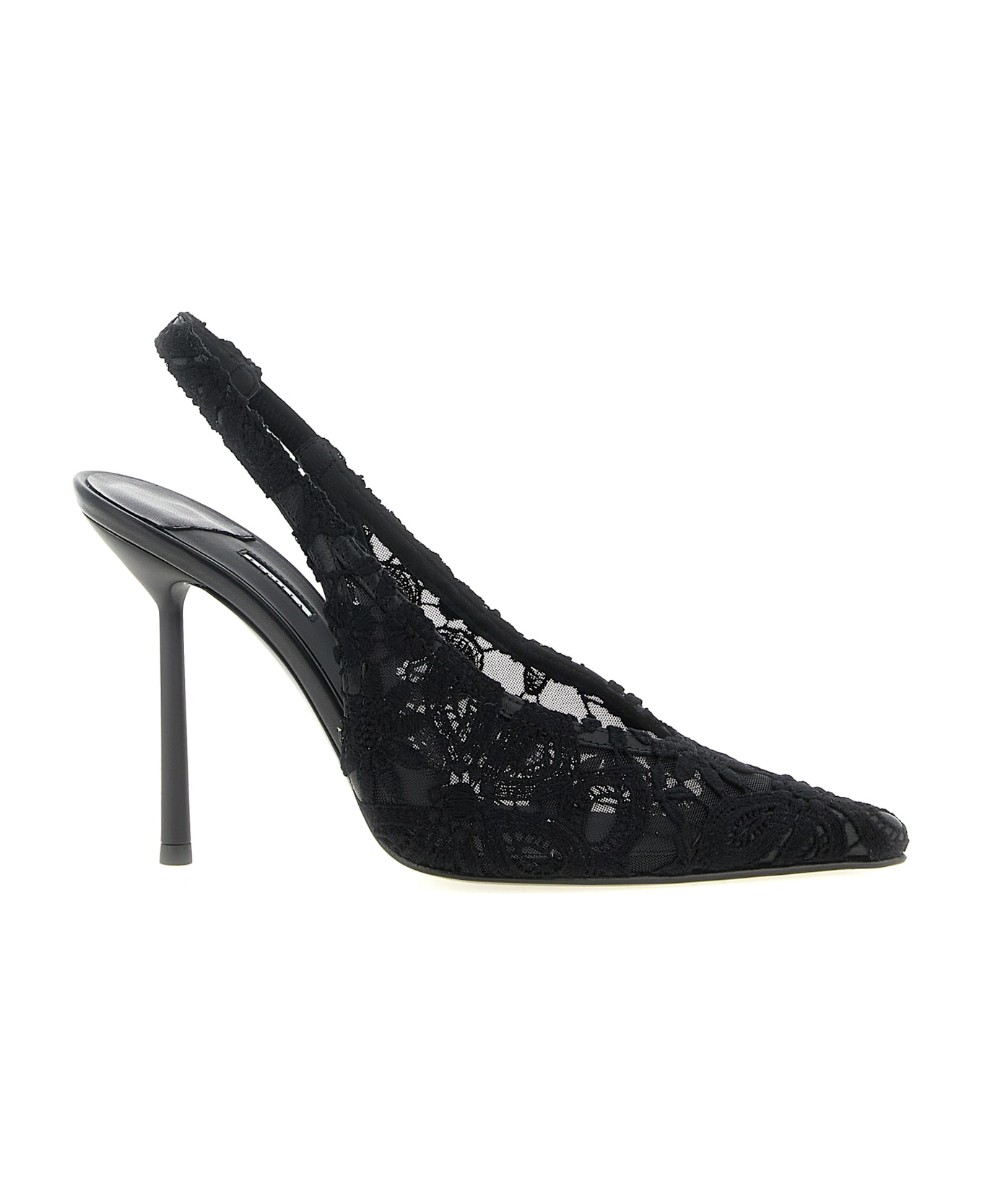 'Chantilly' slingbacks in transparent mesh, smooth leather and tone-on-tone trimmings, deep V-neck on the instep, strap with elastic suede insert, stiletto heel, leather sole.