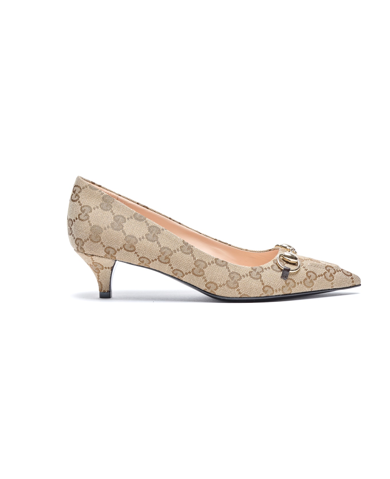 Gucci beige Horsebit GG decollete', pointed toe, GG logo allover. Composition: 100% Fabric, Leather Sole