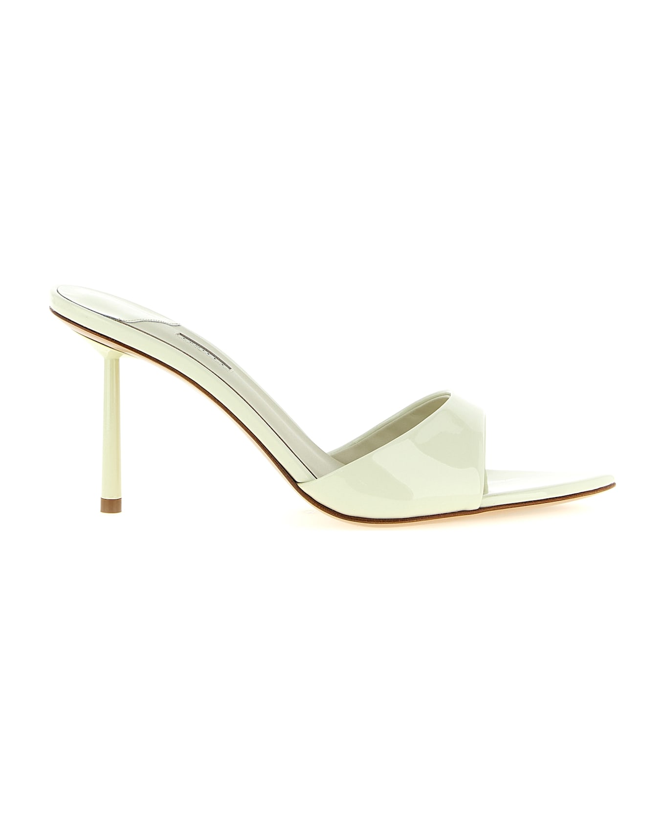 'Bella' sandals in patent calf leather, pointed toe, stiletto heel, leather sole.