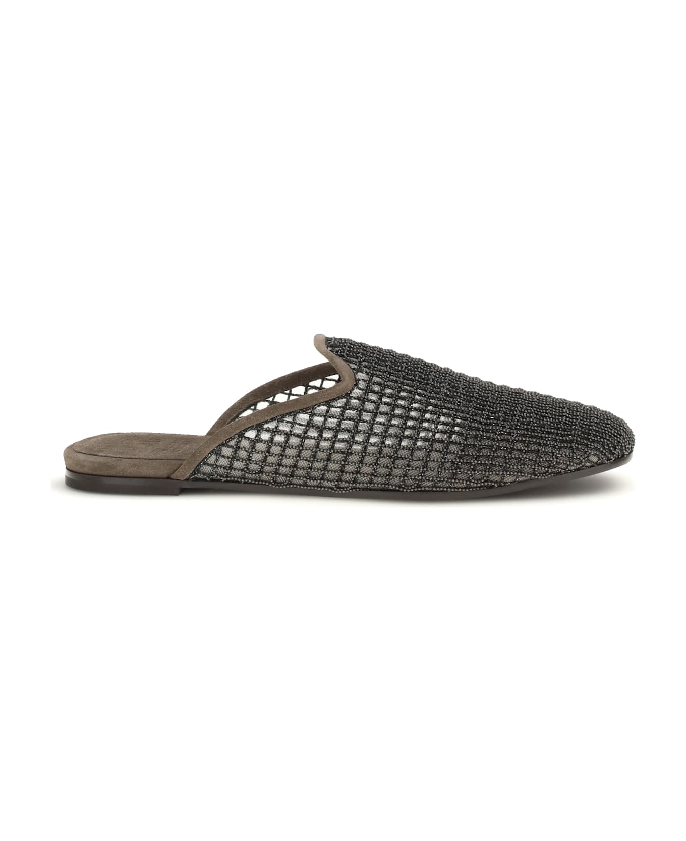 The suede mules with precious net embroidery by brunello cucinelli combine sophistication and comfort. featuring a round toe and flat sole, they are embellished with the elegant precious net embroidery, which gives the model a distinctive and sophisticated detail. Composition: 100% % Calf Leather Bos Taurus