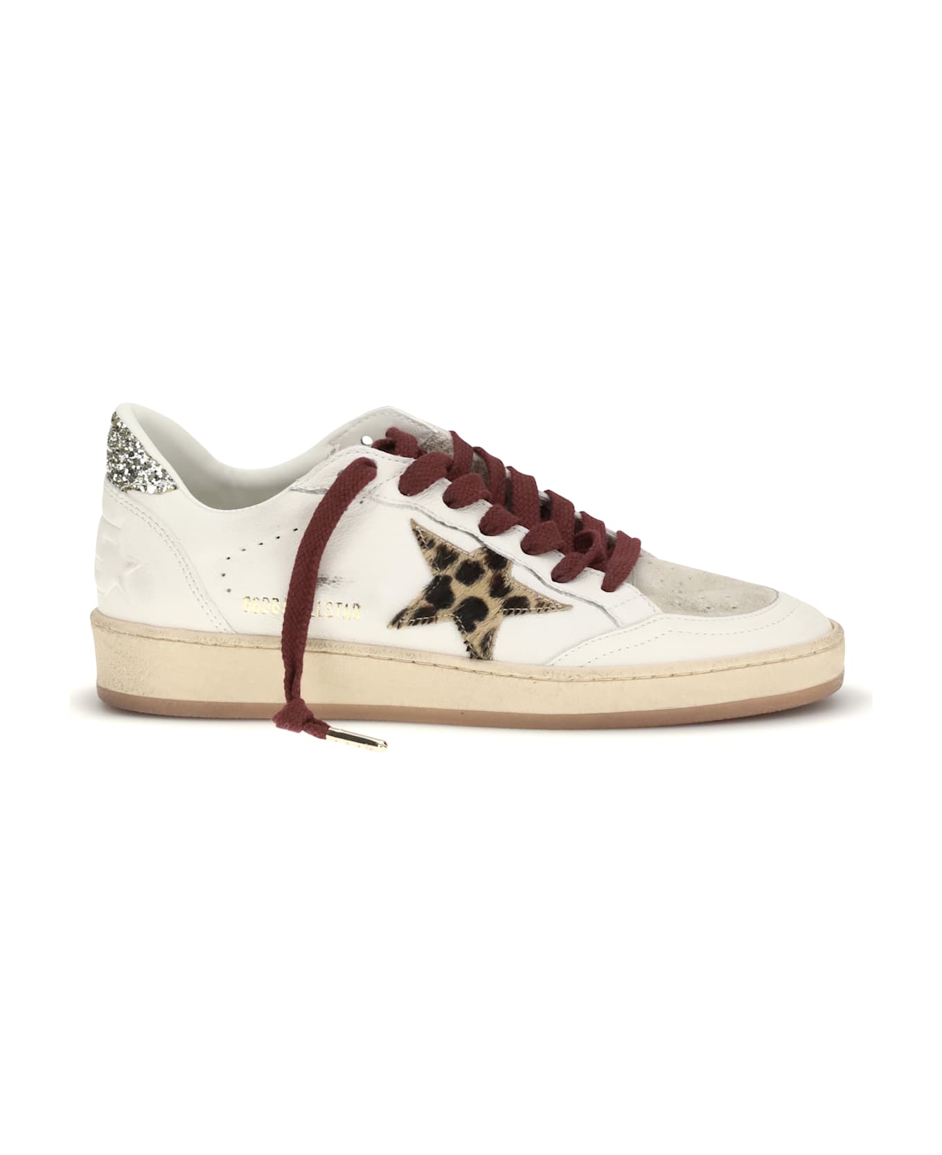 The leather ball star sneakers by golden goose reinterpret the classic sporty style with distinctive details. they feature front lace-up closure, round toe and flat sole. the iconic contrasting star decorates the side panel, while the press-stud logo and embroidered monogram label on the tongue add the brand's signature touch. leopard leather inserts complete the design with a modern, punchy accent.