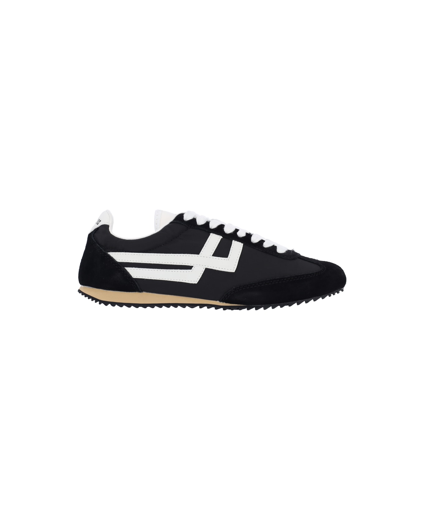 Pro-Keds 1949 'racer 77' sneakers in black leather with tonal fabric details, round toe, lace-up closure, logo patch on tongue, contrasting embroidery on the side, logo print tab on the back, rubber sole.