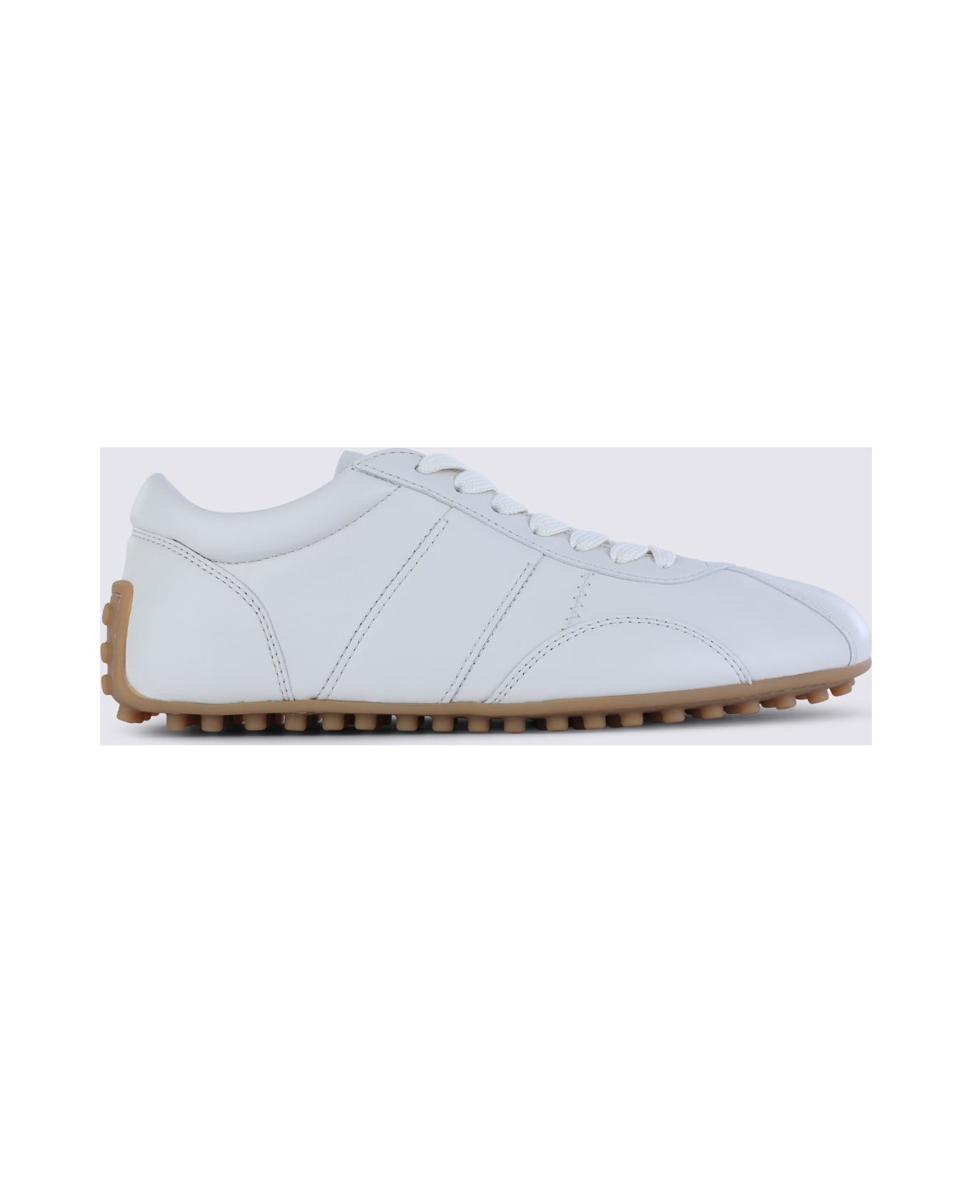 White leather sneakers from Tod's featuring round toe, lace-up fastening, stitching details and rubber sole. Composition: _cover, 100% Le Sole, 100% Le