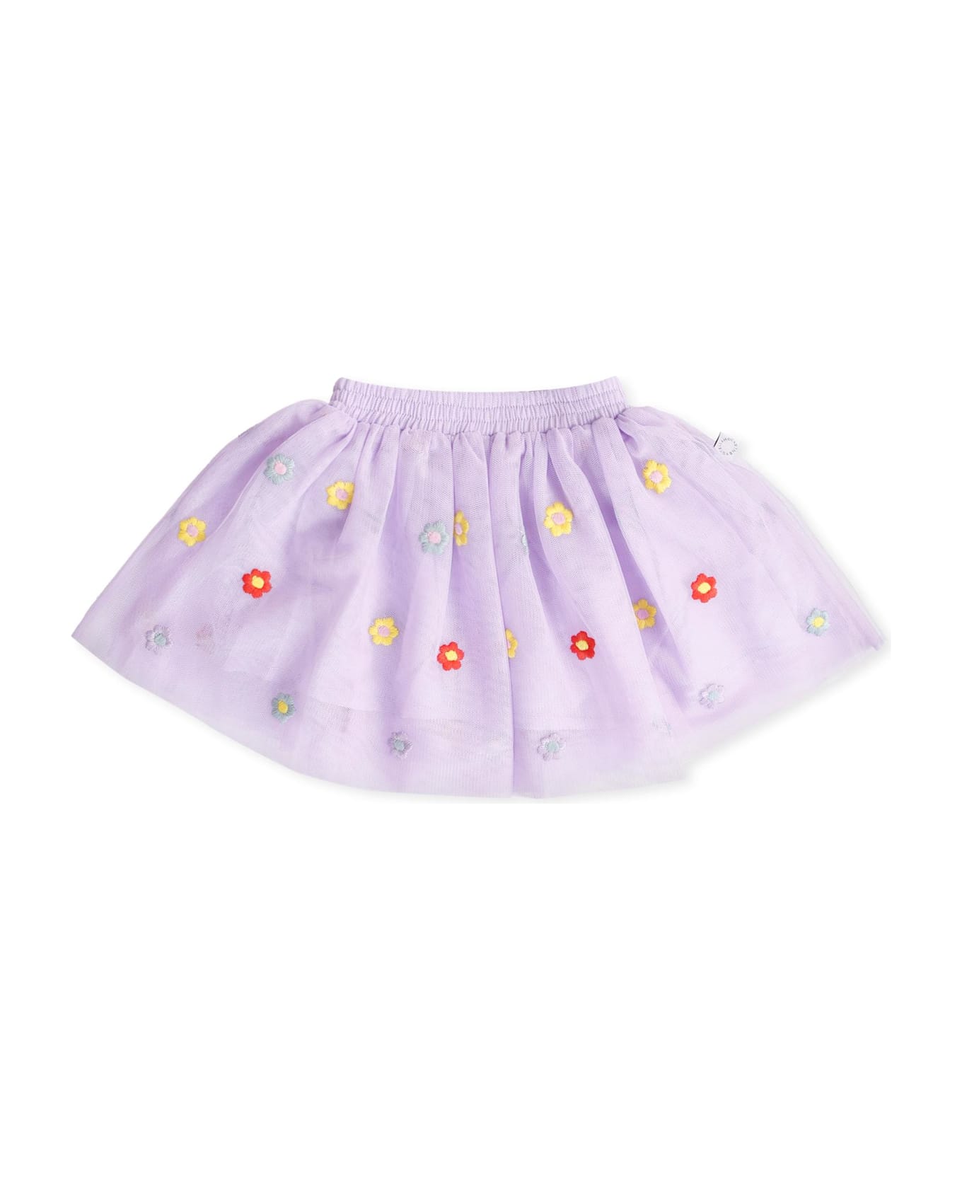 Lilac Skirt For Baby Girl With All-over Embroidered Colorful Flowers