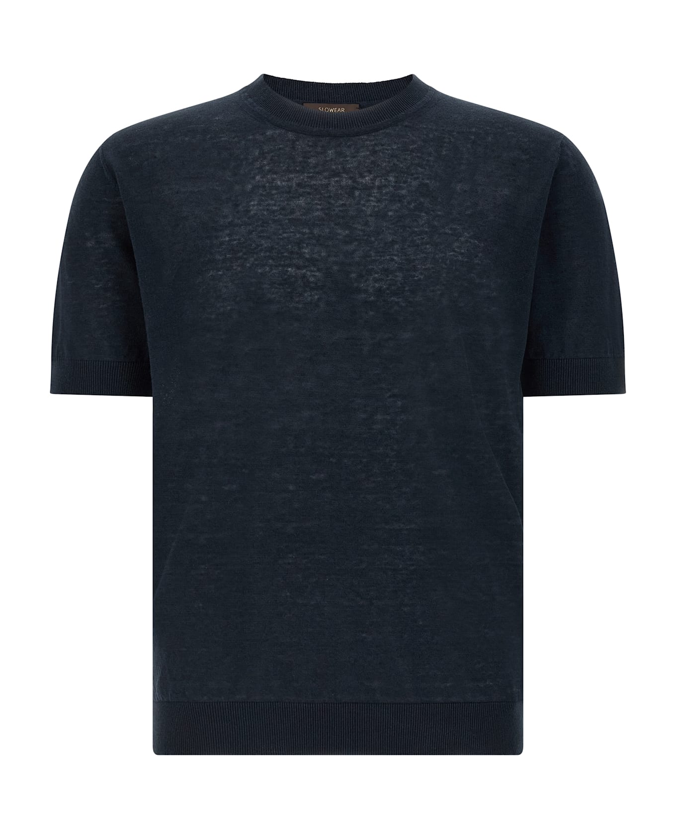 Linen and cotton blend 'Ice Lino' sweater, with crewneck, short cuffed sleeves, and headband on the hem.