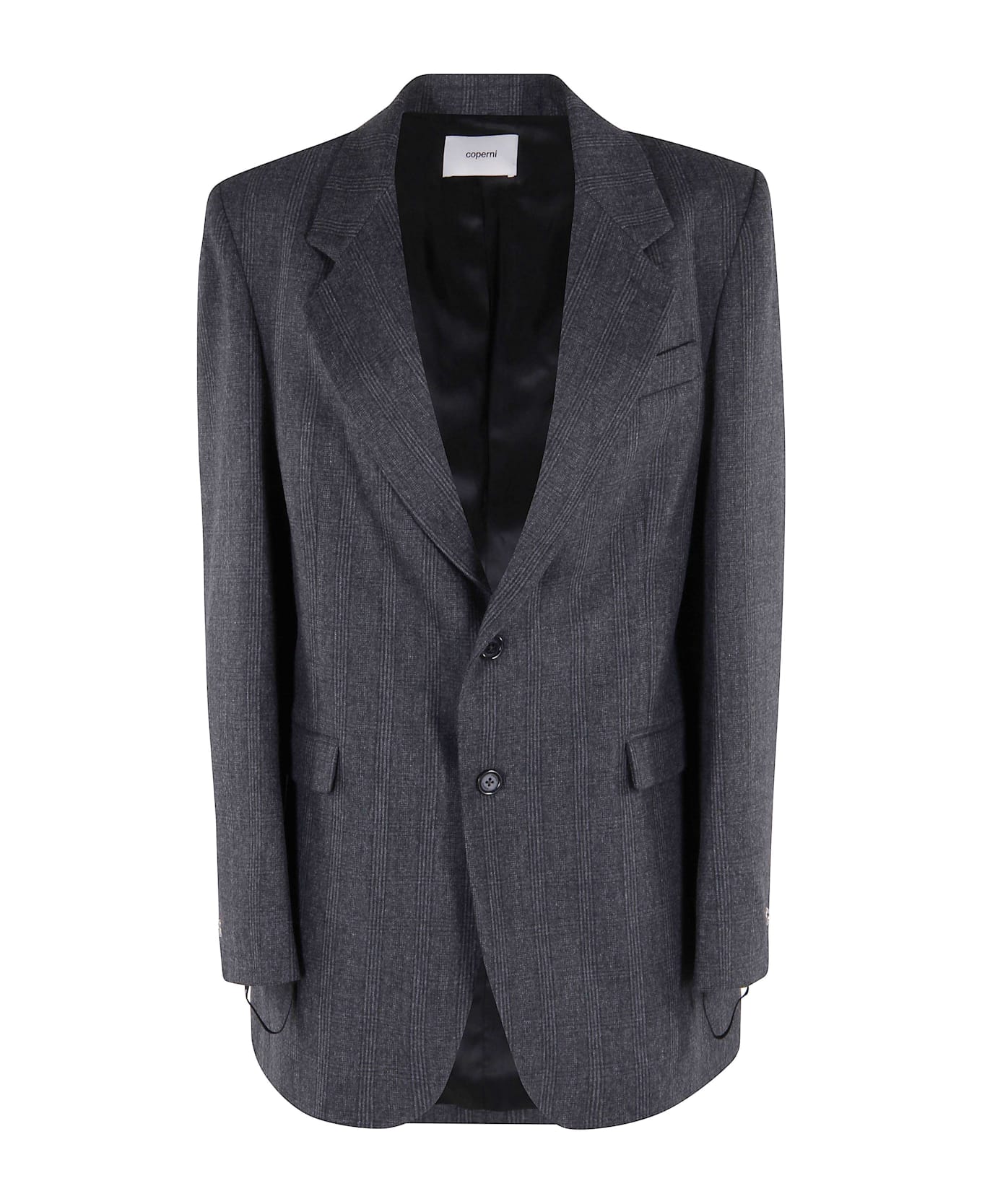 Blazer - Blanket - Gray color - Wool fabric with check pattern - Lapel neckline - Long sleeve with padded shoulder pad - Flap side pockets - Single breasted two button closure - Over fit.