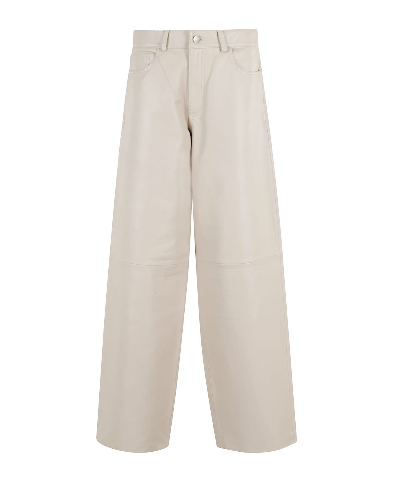 Bethany Leather Trousers -Haikure -Ivory color -Waist loops -Five pockets -Center button and zipper closure