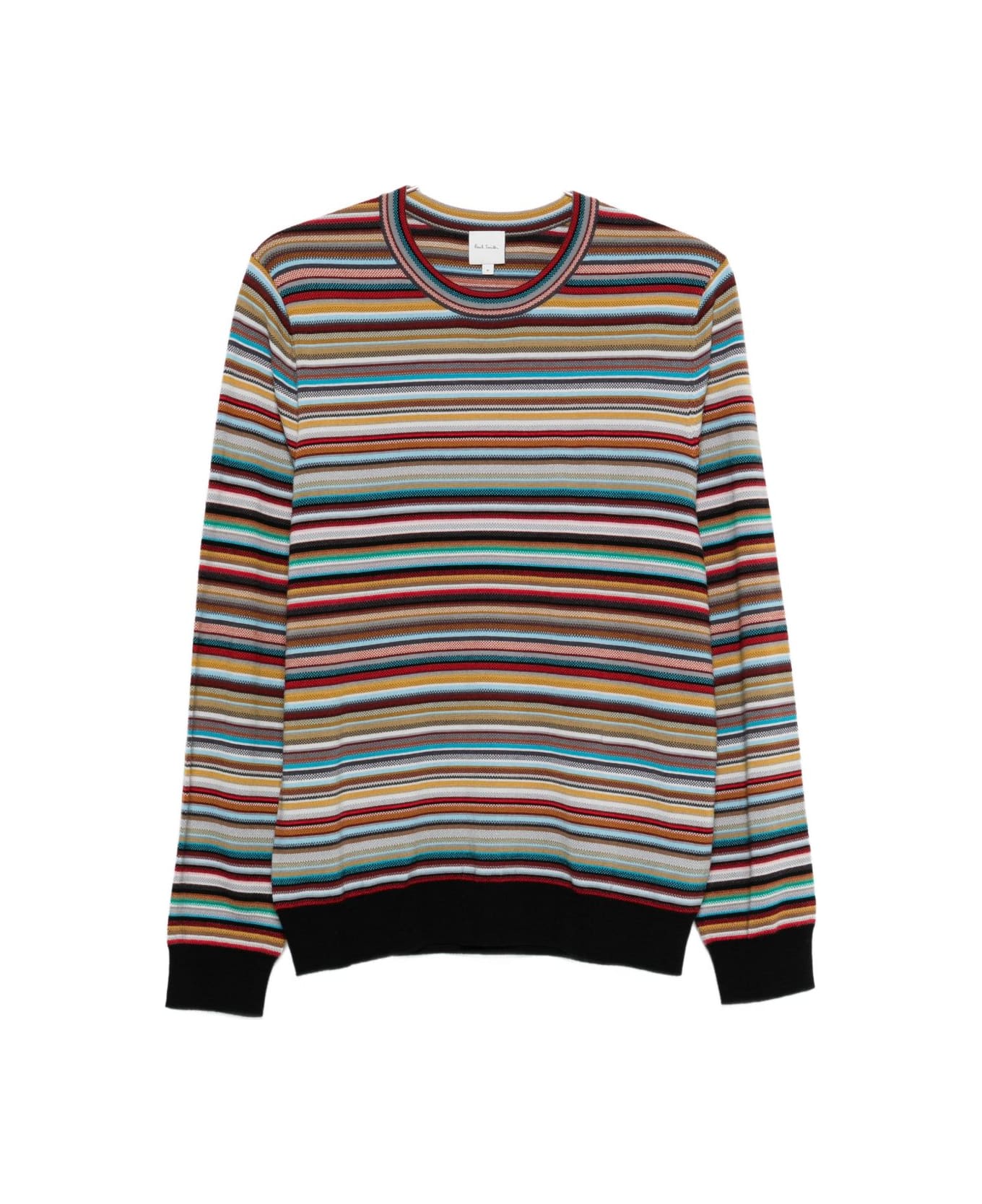 brown and multicoloured striped round neck long sleeves ribbed cuffs ribbed hem