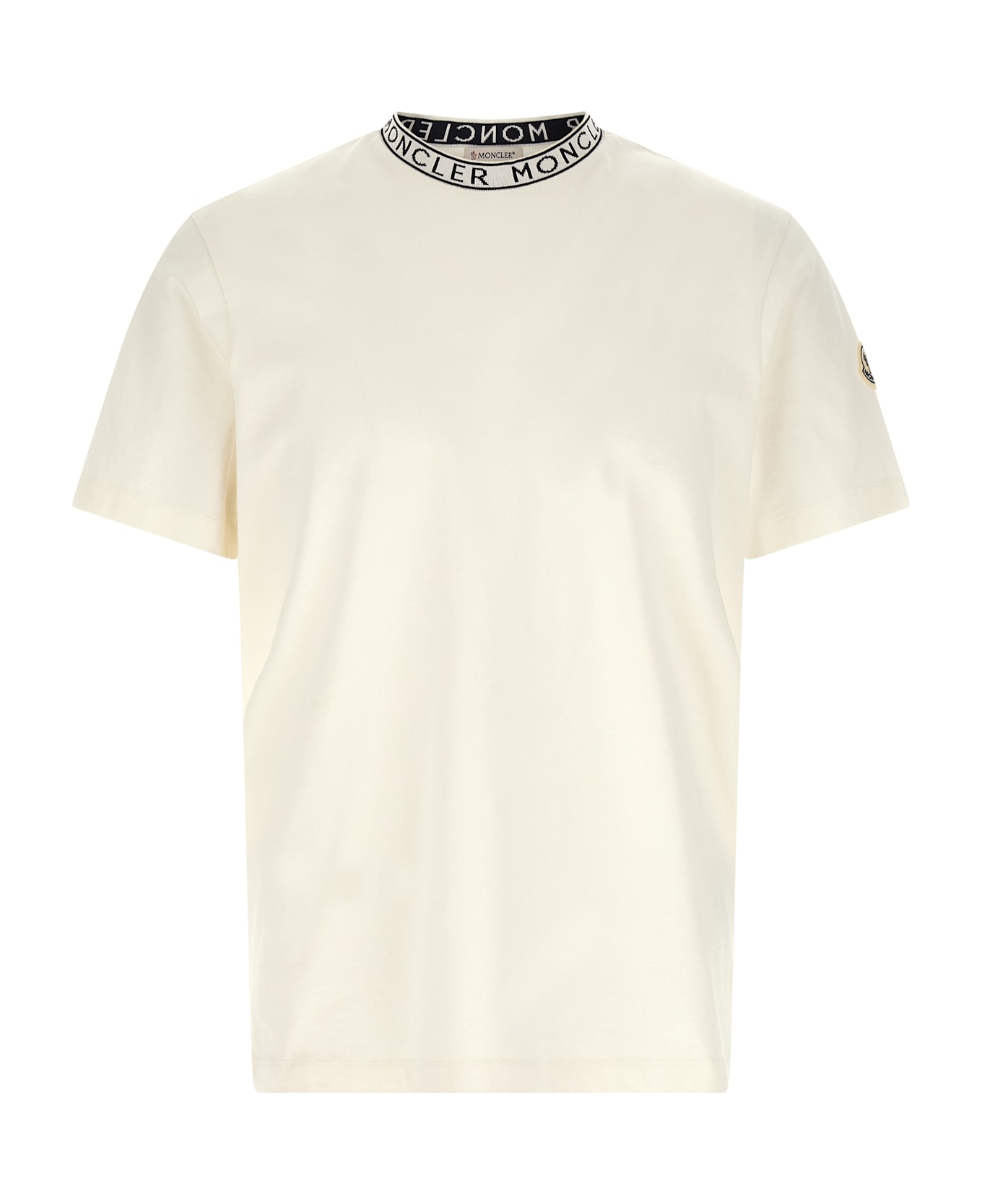 Cotton jersey crewneck t-shirt with jacquard logo and short sleeves with felt logo patch.