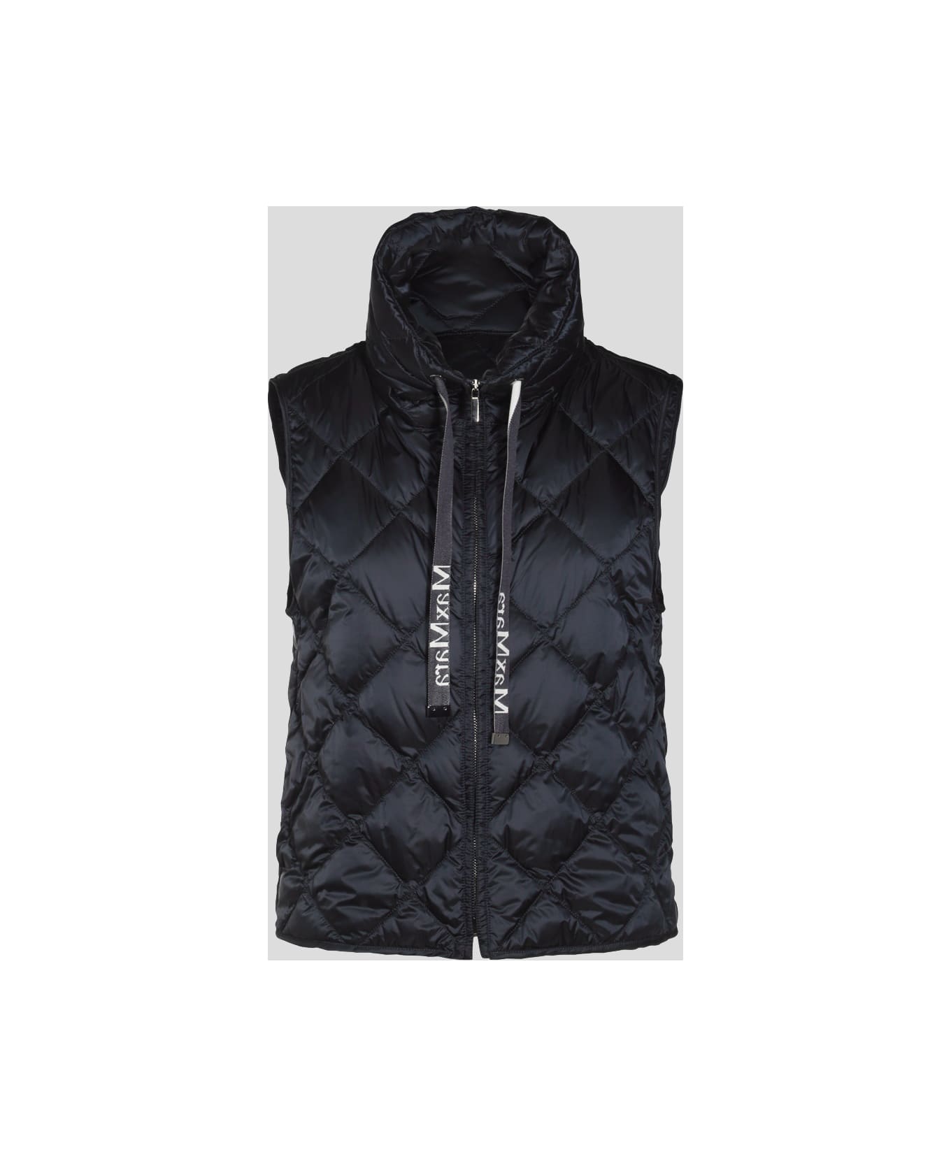 Navy down jacket from Max Mara The Cube featuring hood, zip fastening, sleeveless, pockets, padded and regular vestibility.