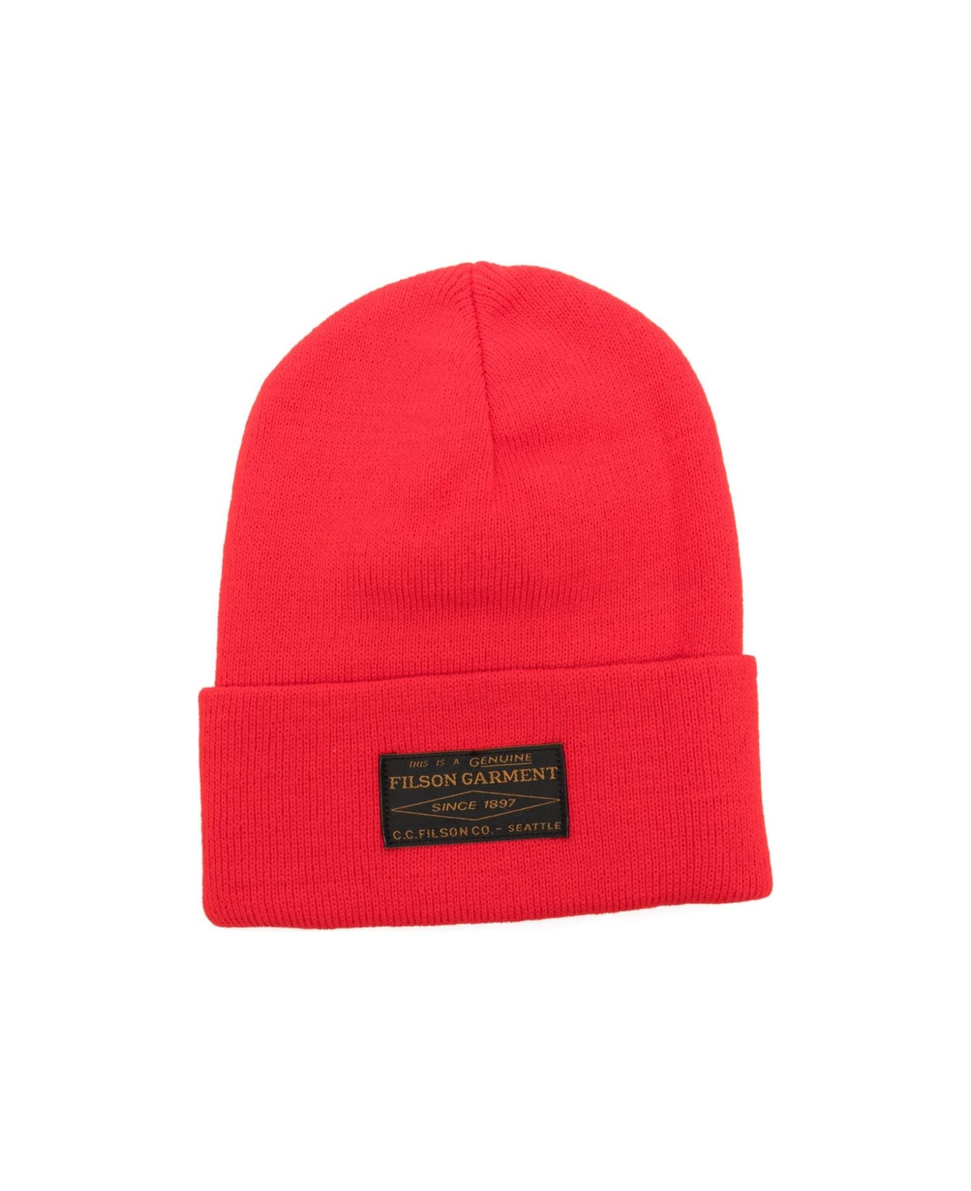red ribbed texture cuffed brim logo patch