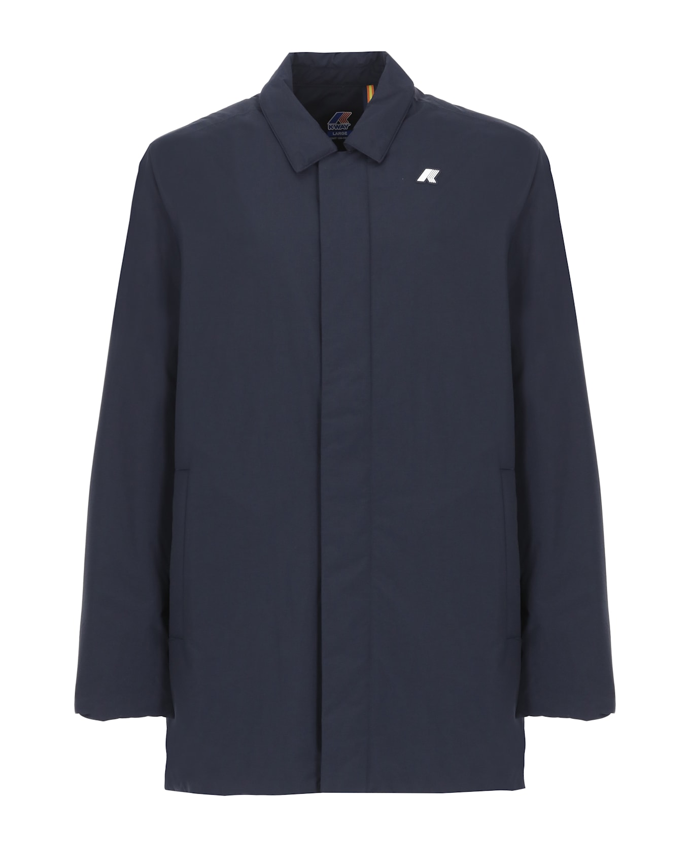 - Blue K-Way down jacket for man - Collar - Front zip and button fastening - Two front zip pockets - Front contrasting color logo