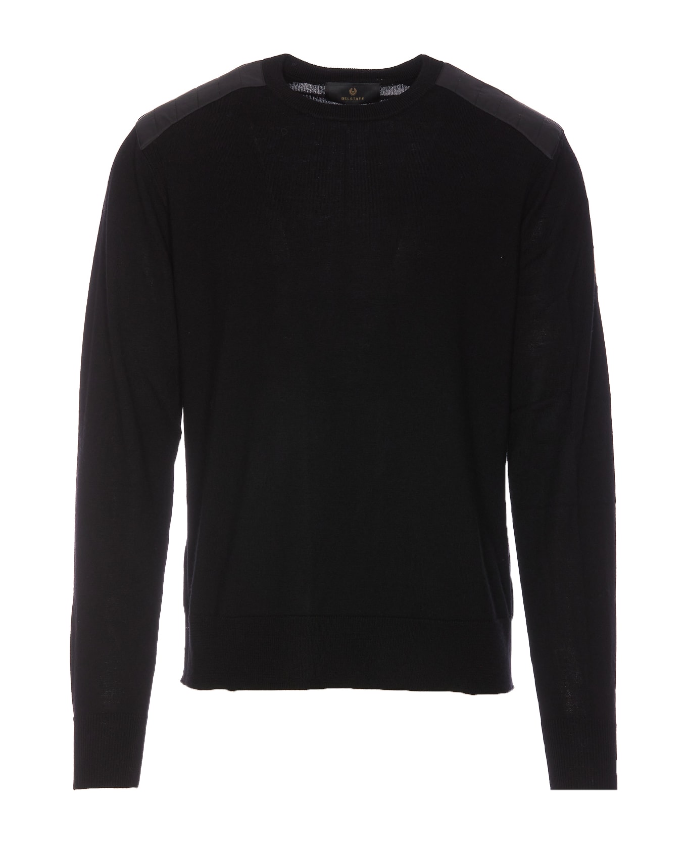 Belstaff black sweater, crewneck, long sleeves, lateral patch logo