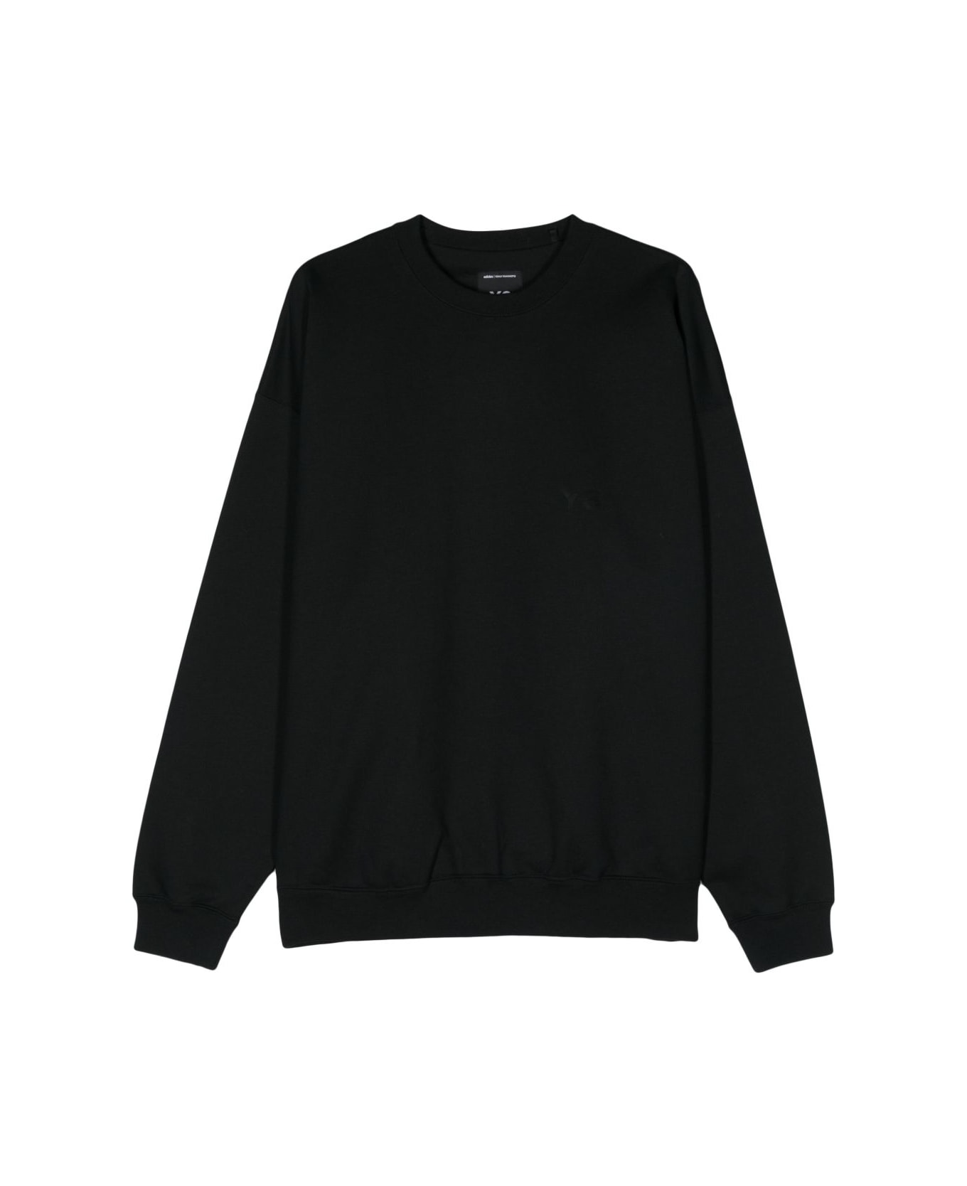 black cotton blend jersey texture ribbed crew neck drop shoulder logo print at the chest long sleeves fleece lining ribbed cuffs and hem When buying this unisex item, keep in mind that it is graded in standard men's sizing.