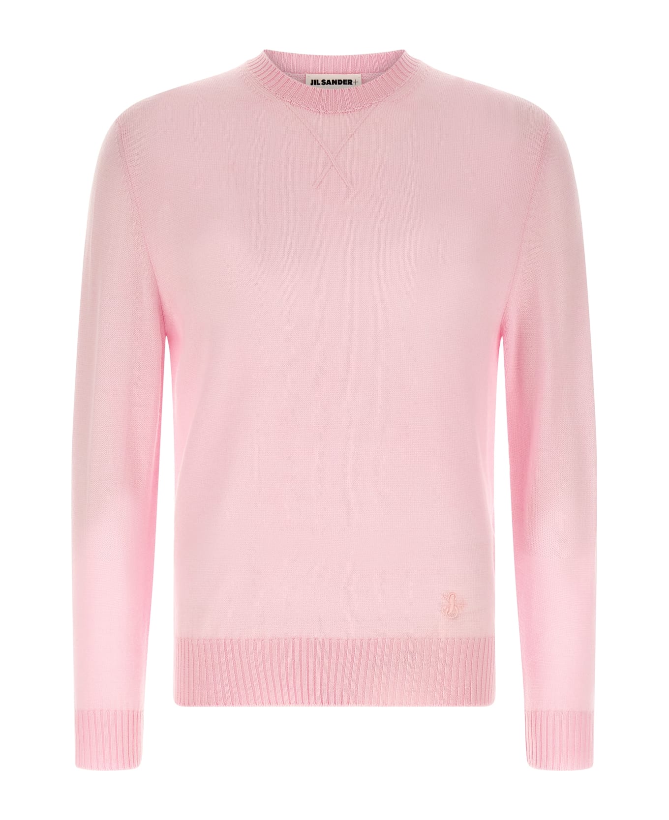 Knitted virgin wool sweater with tone-on-tone logo embroidery on the front, crew neck, long sleeves with cuffs and dropped shoulder.