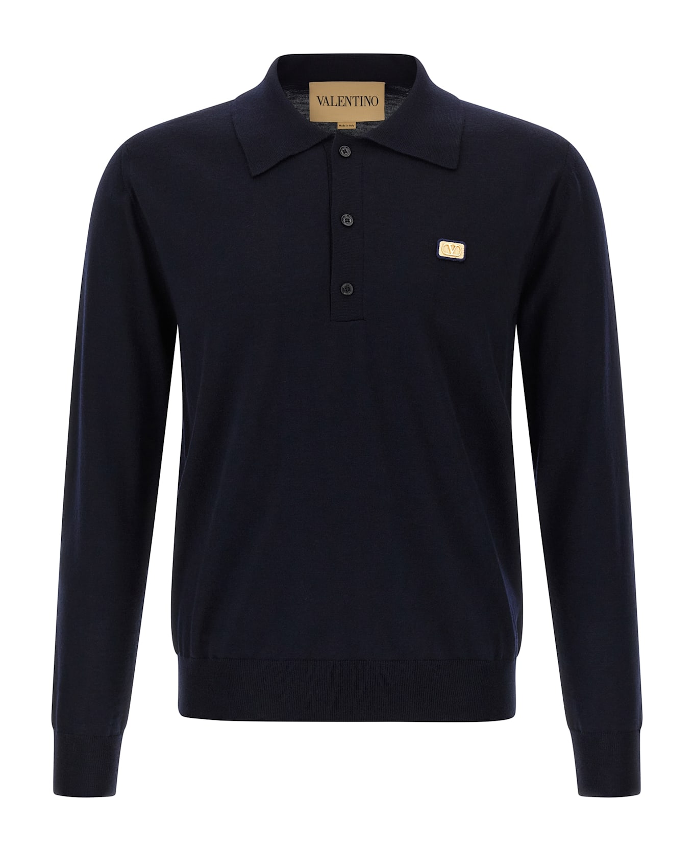 Light virgin wool polo shirt, fabric patch with VLogo Signature metallic on the front, collar and buttons, long cuffed sleeves, and headband on the hem.