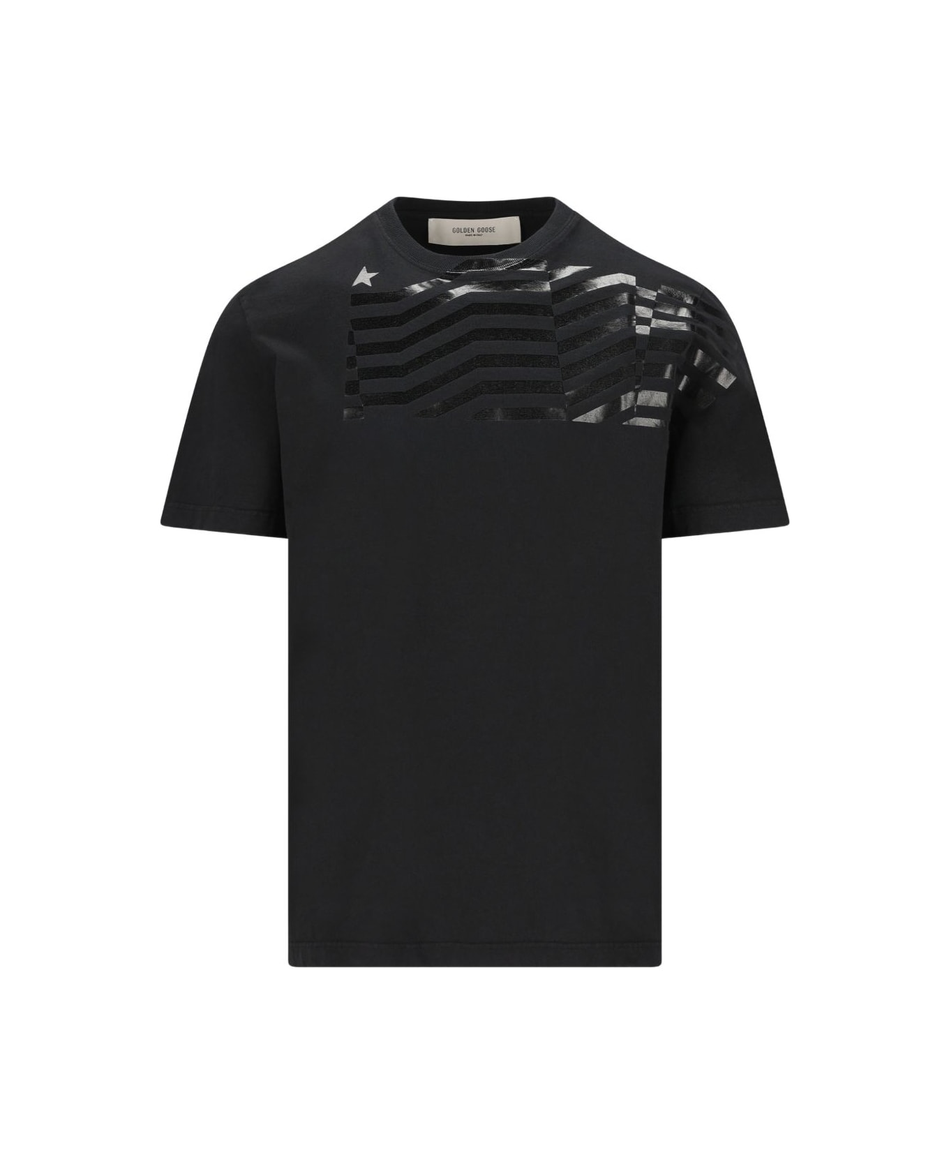 black cotton tone-on-tone glossy print crew neck short sleeves