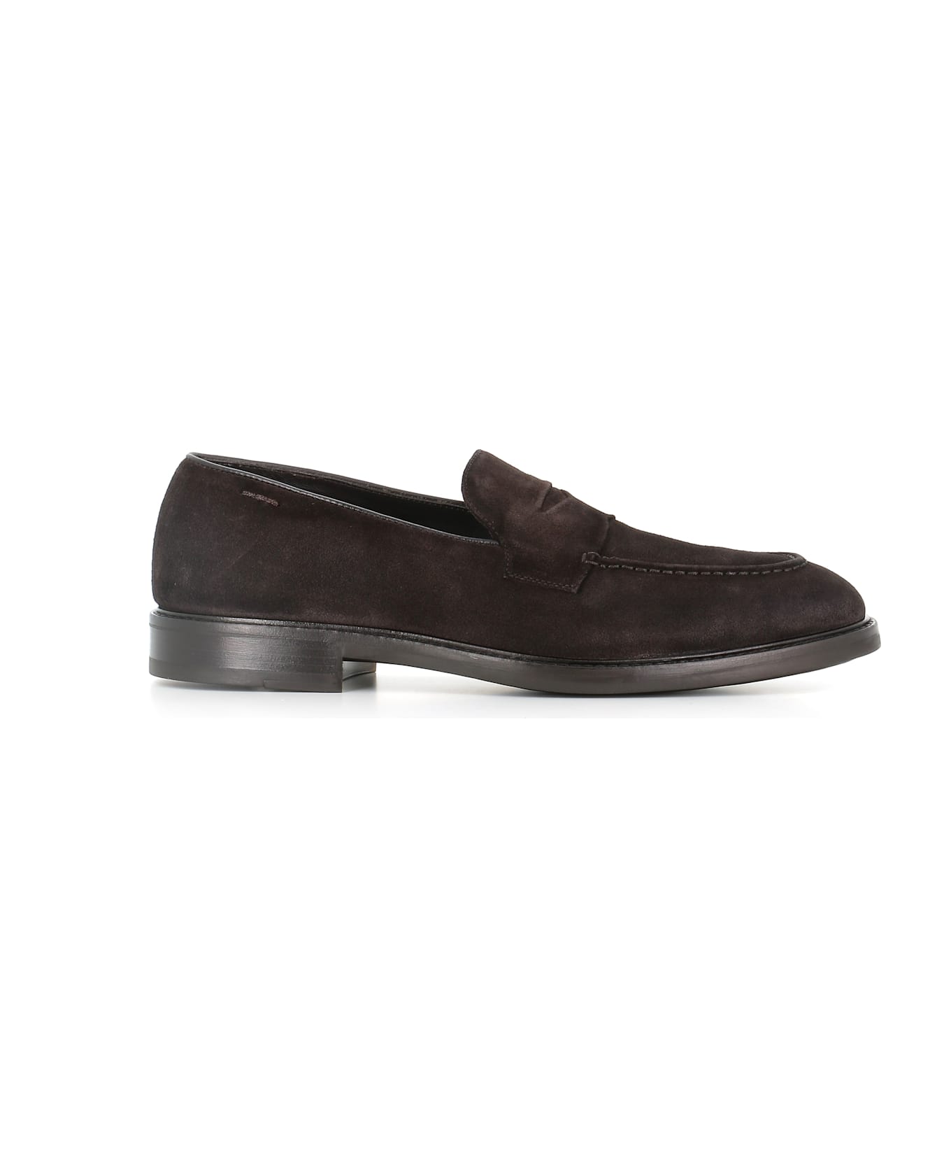 Dark brown suede men's loafer by Alexander Hotto, featuring a tapered toe and visible stitching. Lined interior. Padded insole. Handcrafted workmanship. Flexible rubber sole. Heel: 2,5 cm Composition: Suede
