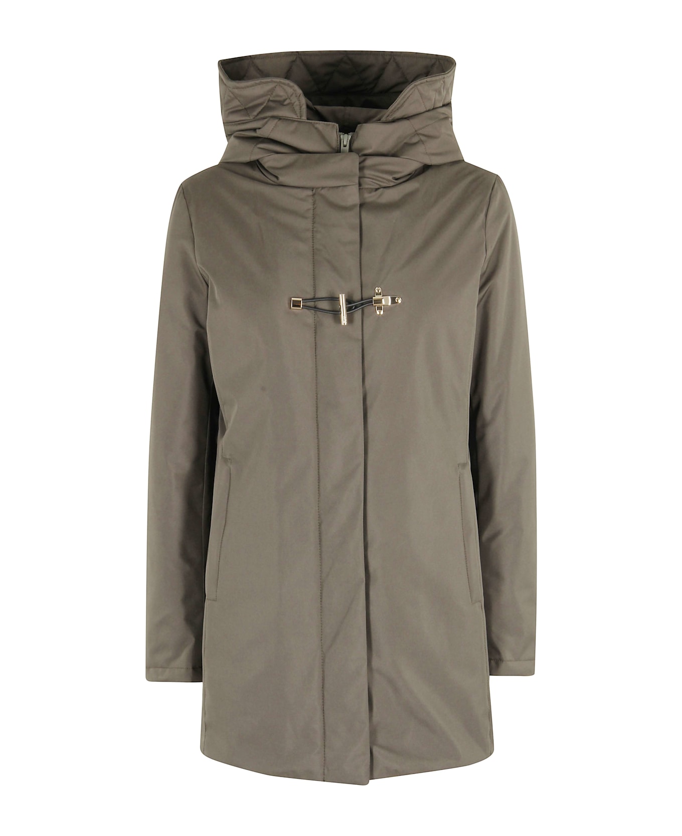 Toggle jacket - Fay - Military color - Water-repellent technical gabardine fabric - Bib with removable hood - Long sleeve with inside cuff - Flush side pockets with zipper - Front button and iconic hook-and-eye closure