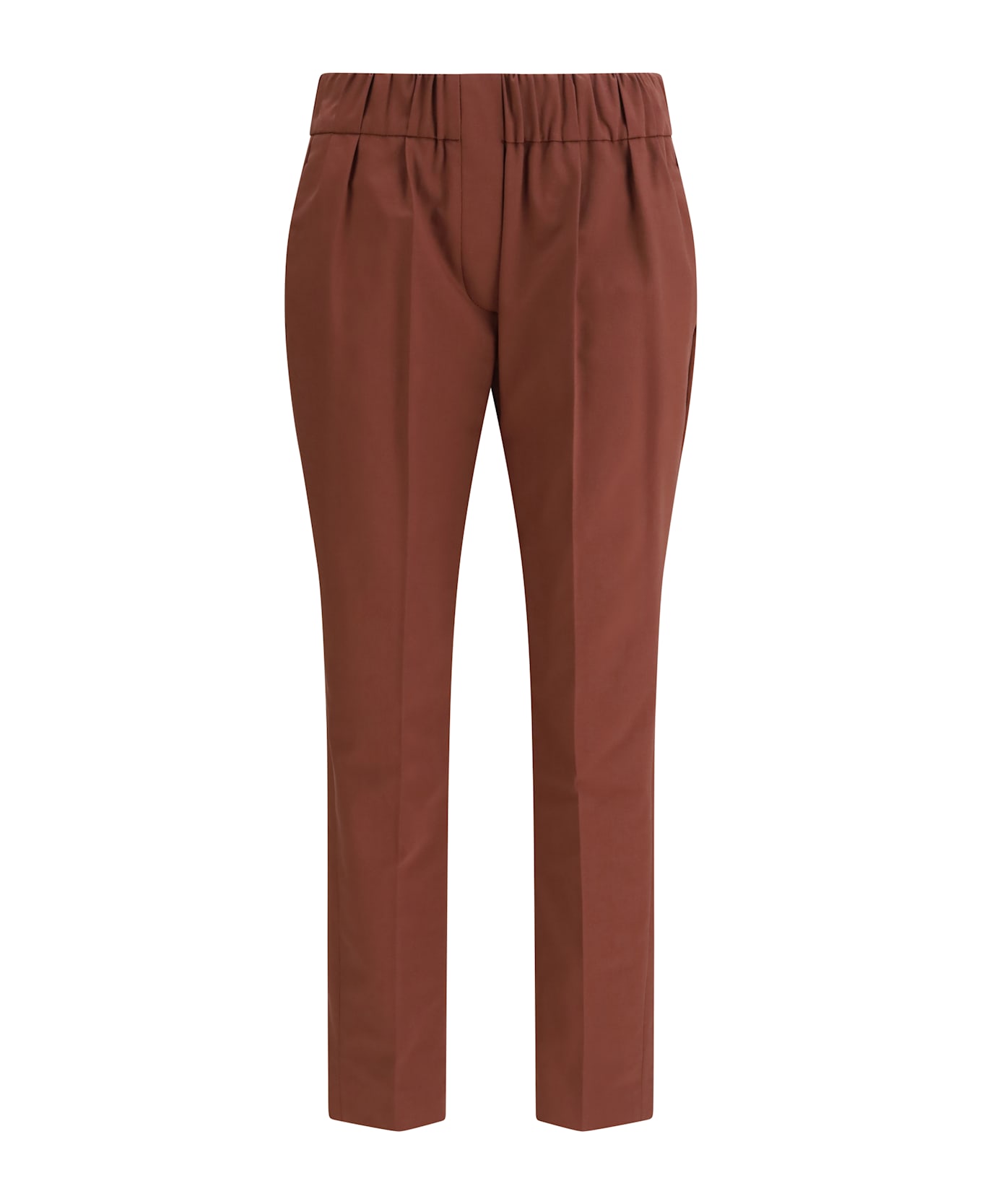 The cotton trousers by brunello cucinelli embrace understated sophistication through a clean, essential design. the elasticated waistband ensures ease and comfort, while the straight-leg silhouette lends a refined, timeless structure. lateral welt pockets and two back slit pockets enhance the minimalist aesthetic, complemented by a monochrome finish that highlights the brand s discreet elegance.