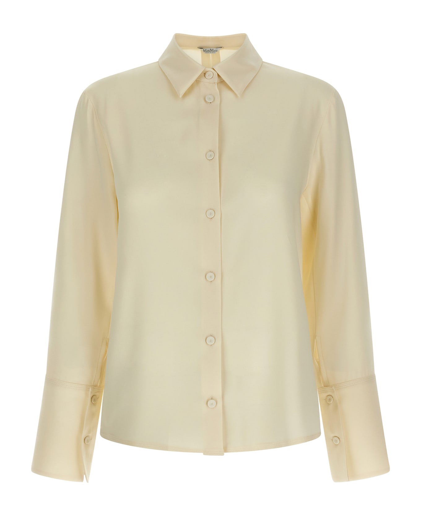 'MxpVoliera' stretch silk crêpe de Chine shirt with front button closure, long sleeves with maxi cuffs, and asymmetrical hem.