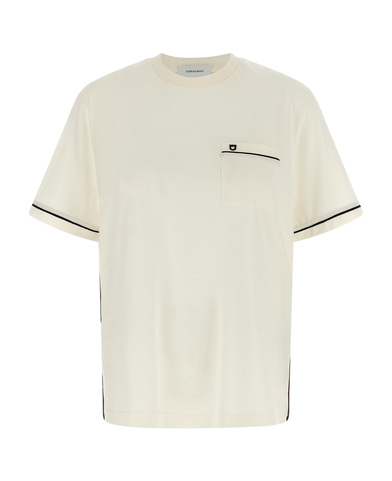 Cotton and cashmere yarn jersey t-shirt with contrasting details, breast pocket with 'Gancini' embroidery, crew neck, short sleeves. Composition: 80% cotton 20% cachemire