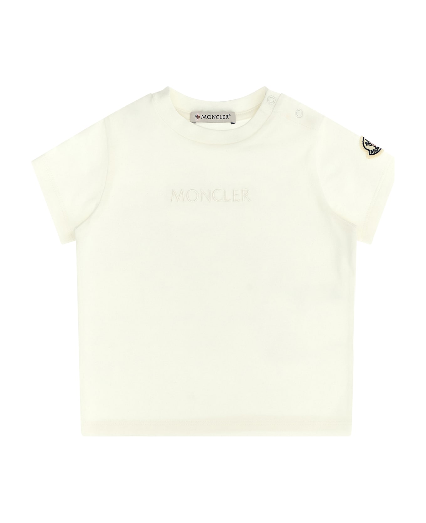 KIDS Cotton jersey T-shirt with tone-on-tone logo embroidery on the front, crew neck, snap buttons on the left shoulder, short sleeves with felt logo patch appliqué.