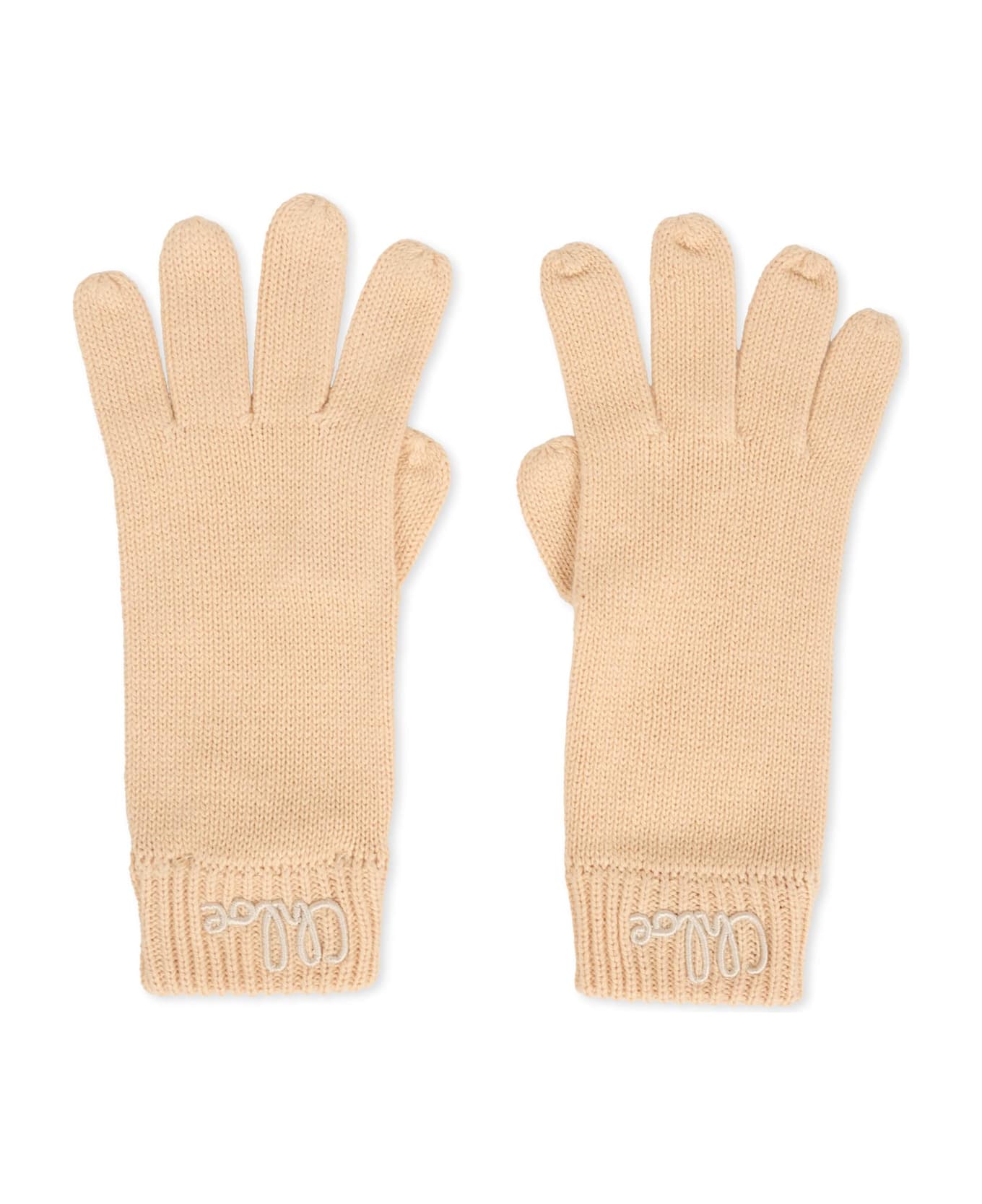 Beige gloves in an organic cotton blend, with a ribbed hem; they are embellished with an embroidered logo.