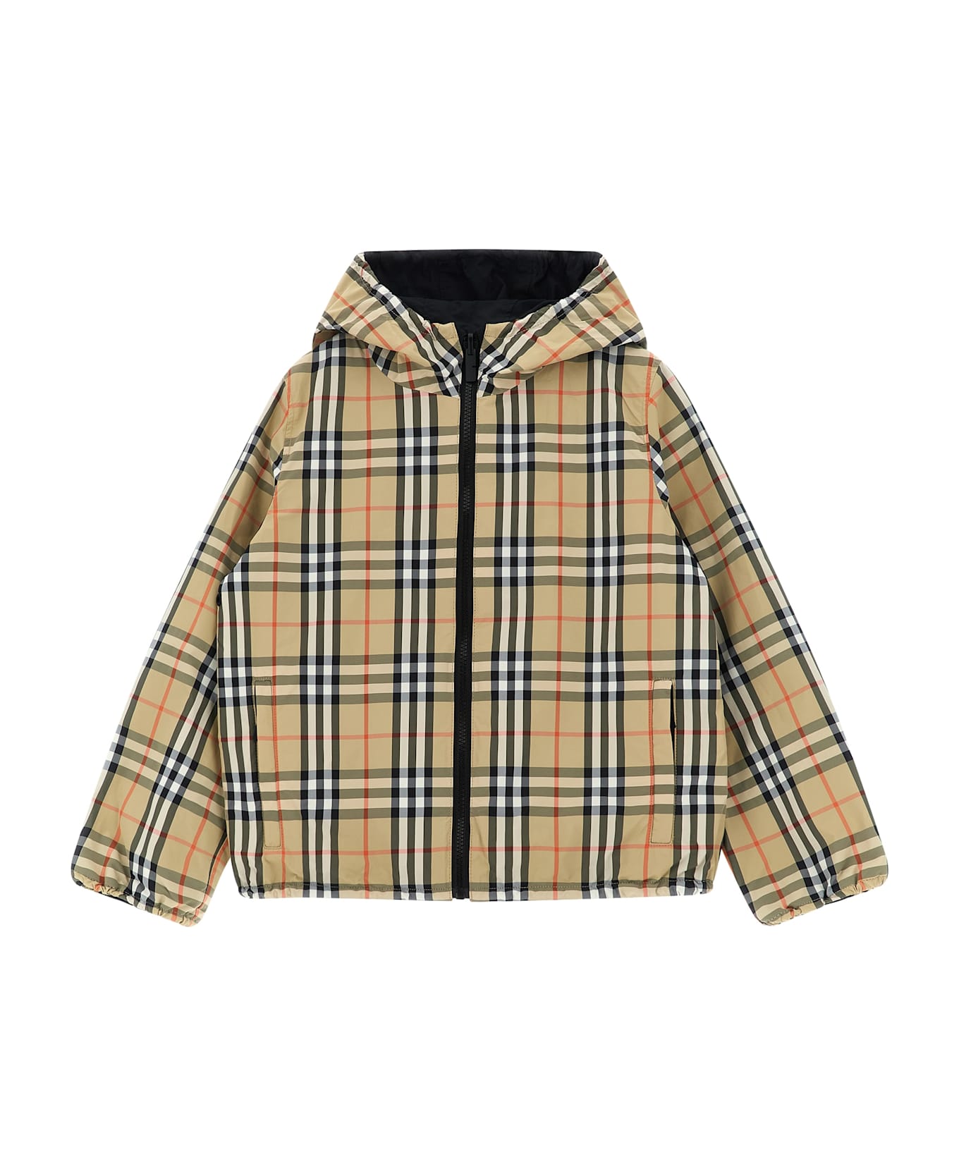 'Reece' reversible jacket in solid nylon and Burberry Check, hood, 'Equestrian Knight Design' patch and front zip closure, pockets, long sleeves with elastic cuffs, elastic hem. Composition: 100% polyamide
