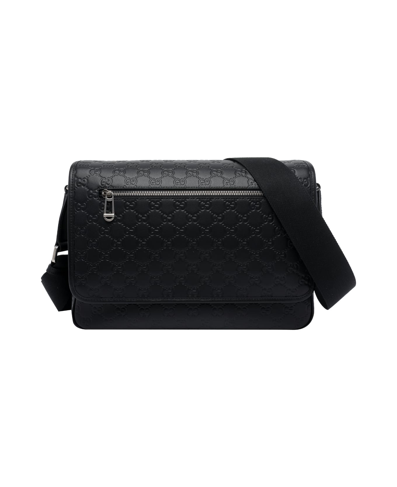 Gucci black Medium GG emblem crossbody bag, magnetic closure, inner zipped pocket, external pocket, adaptable strap, tone on tone logo allover Composition: 100% Calf Leather