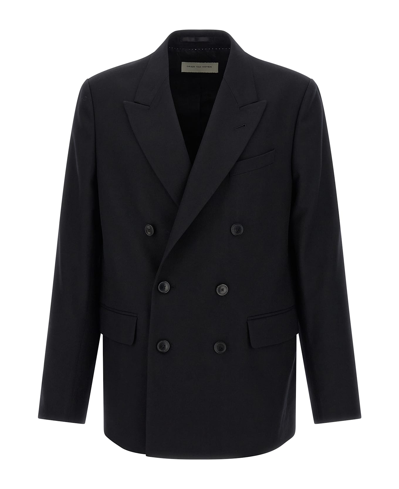 'Buforden' double-breasted wool blazer with buttons, peak lapels, front pockets, back vent and long sleeves with buttons.