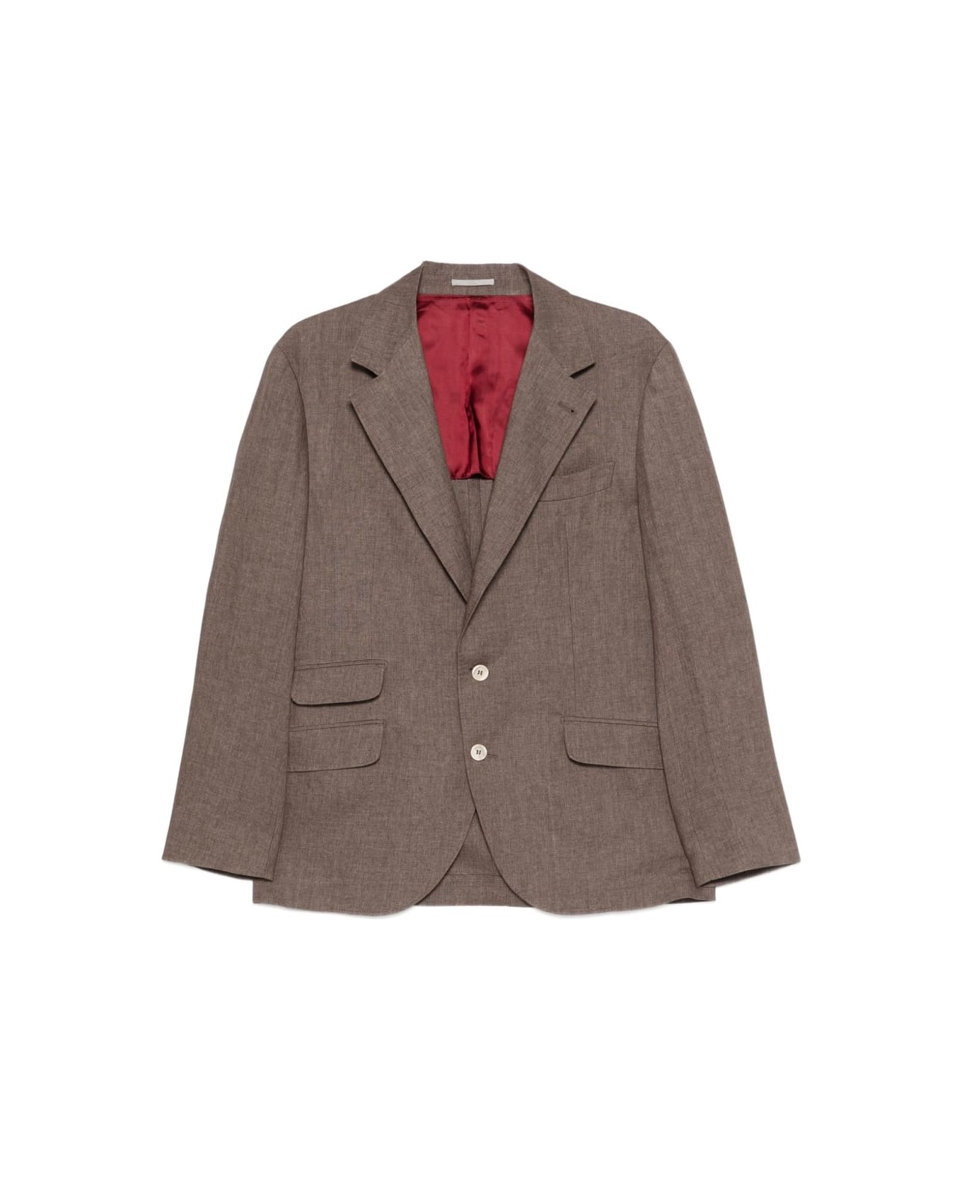 brown flap pockets button fastening long sleeves single-breasted notched lapels