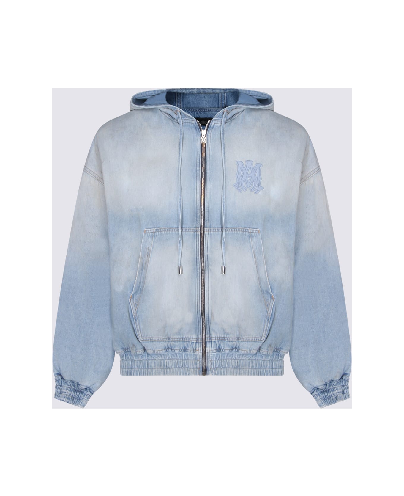 Blue cotton denim jacket from Amiri featuring hood, zip fastening, long sleeves, pockets, frontal logo and regular vestibility. Composition: _, 100% Co