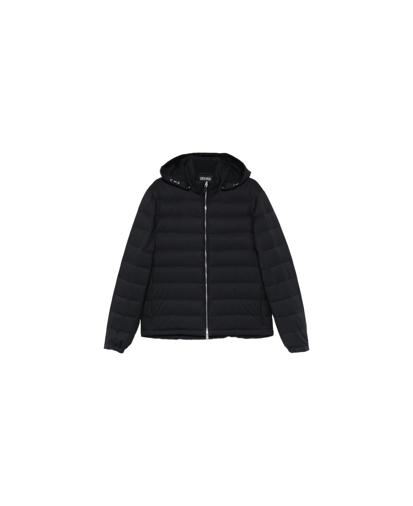black horizontal quilting hood zip fastening long sleeves elasticated cuffs