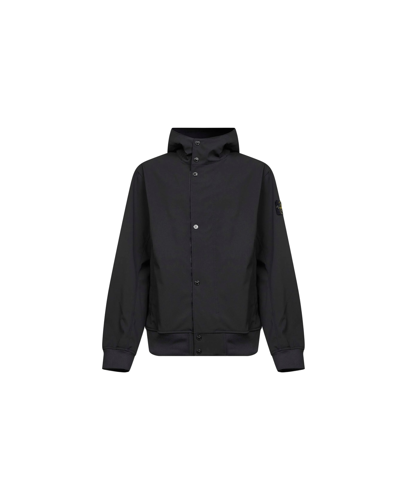 black classic hood ribbed knit cuffs side pockets badge at the sleeve button placket